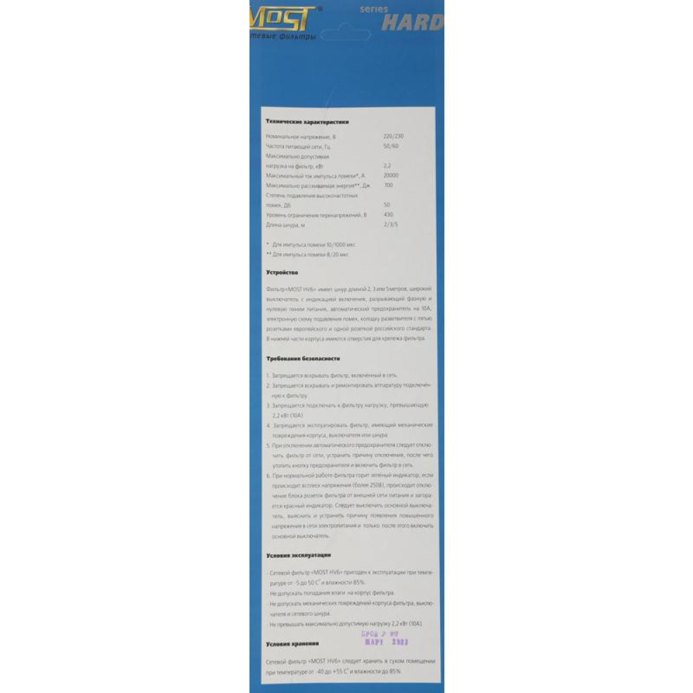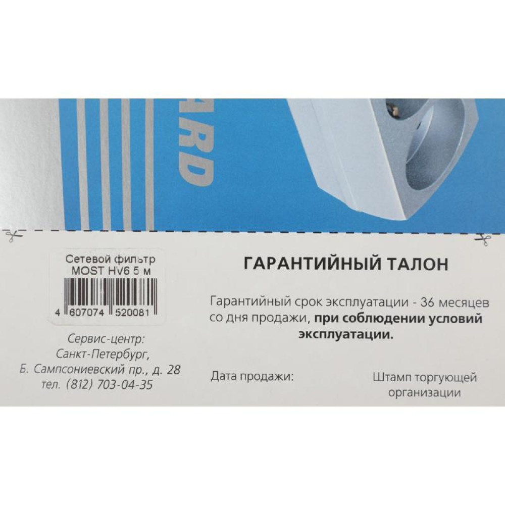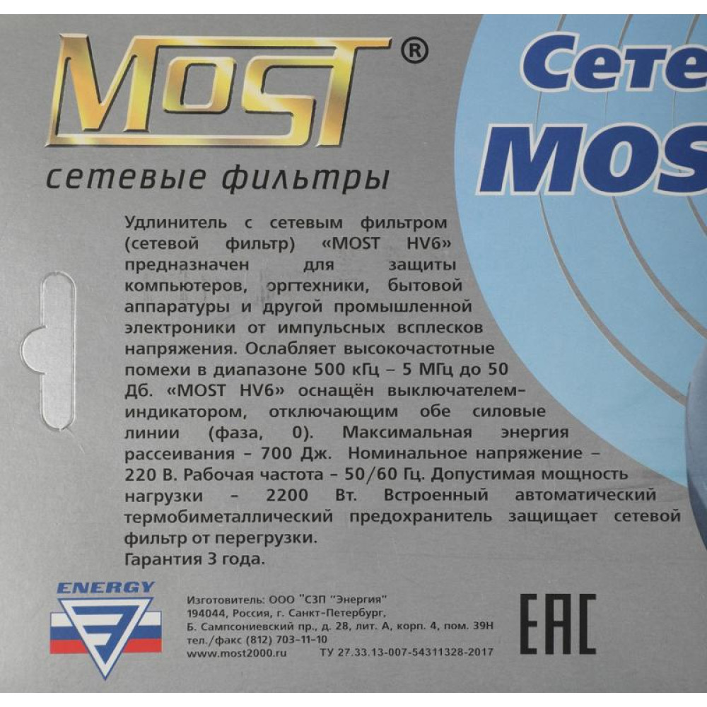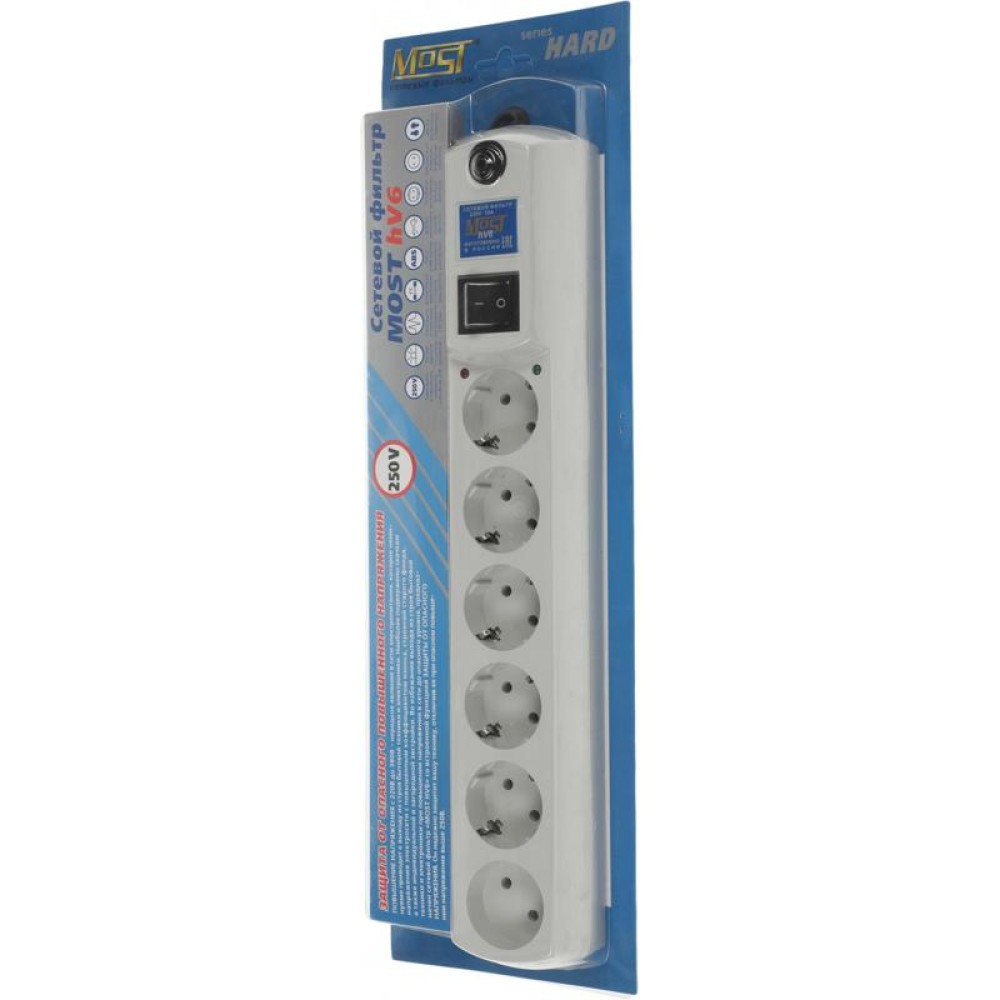 Сетевой фильтр Most HV6 5м (6 розеток) белый (коробка)