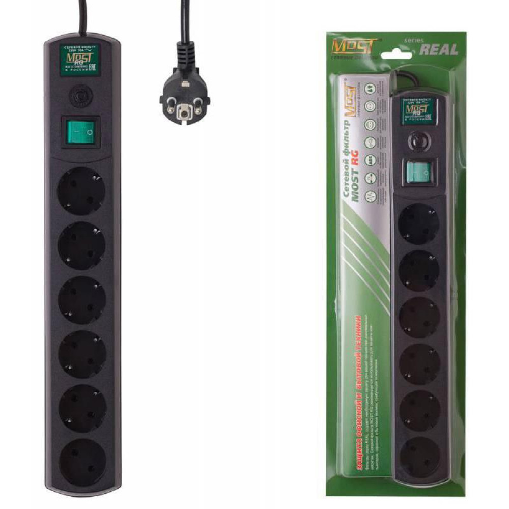 Сетевой фильтр Most RG 5м (6 розеток) черный (коробка)