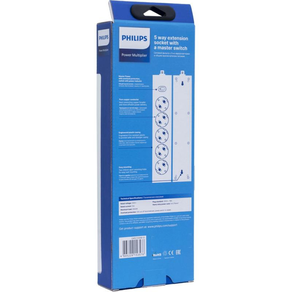 Сетевой фильтр Philips CHP2155WB/51 3м (5 розеток) белый (коробка)