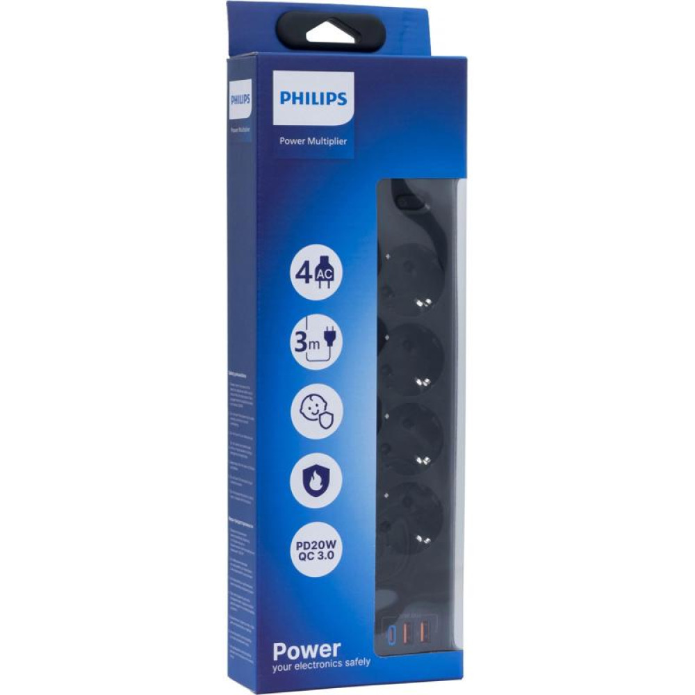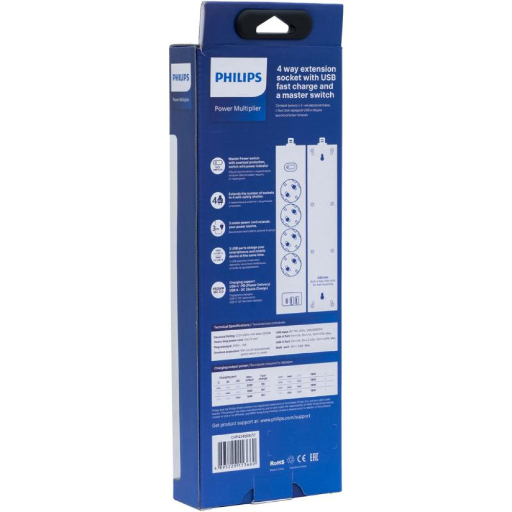 Сетевой фильтр Philips CHP4346BB/51 3м (4 розетки) черный (коробка)