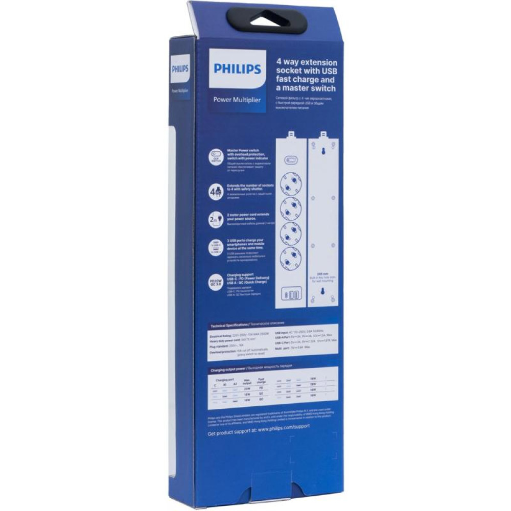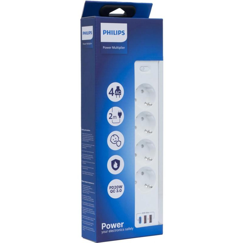 Сетевой фильтр Philips CHP4346WA/51 2м (4 розетки) белый (коробка)