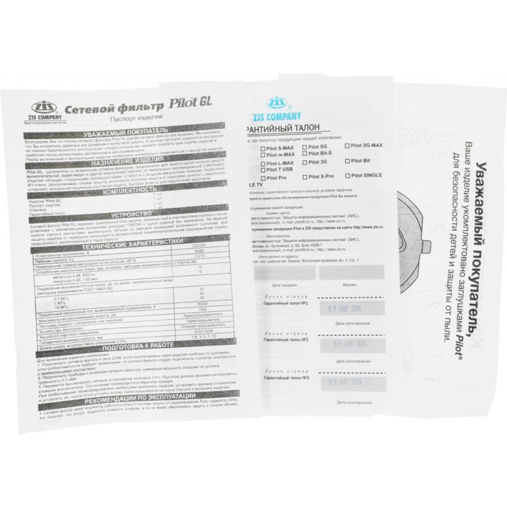Сетевой фильтр Pilot GL 5м (6 розеток) белый (коробка)