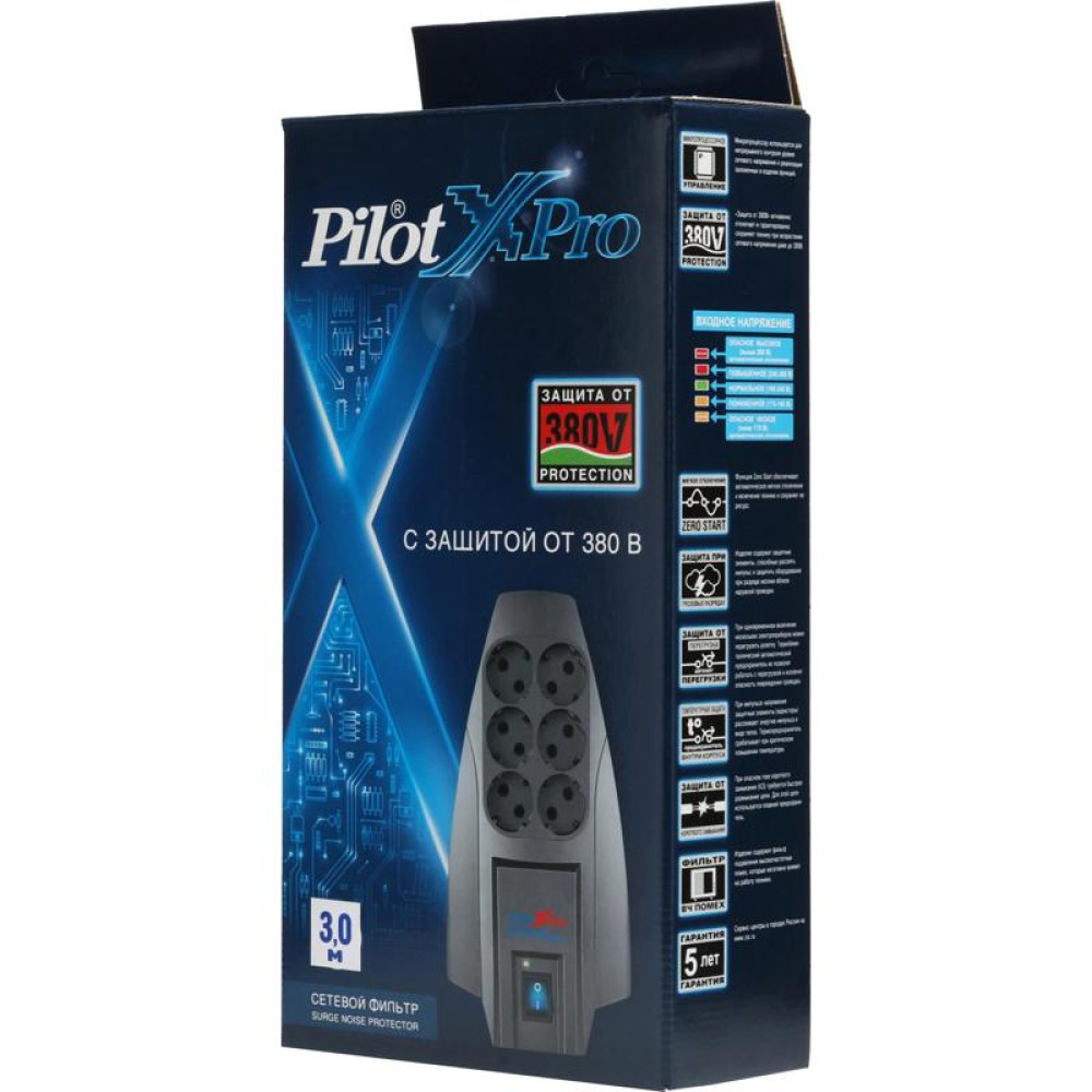 Сетевой фильтр Pilot X-Pro 3м (6 розеток) серый (коробка)