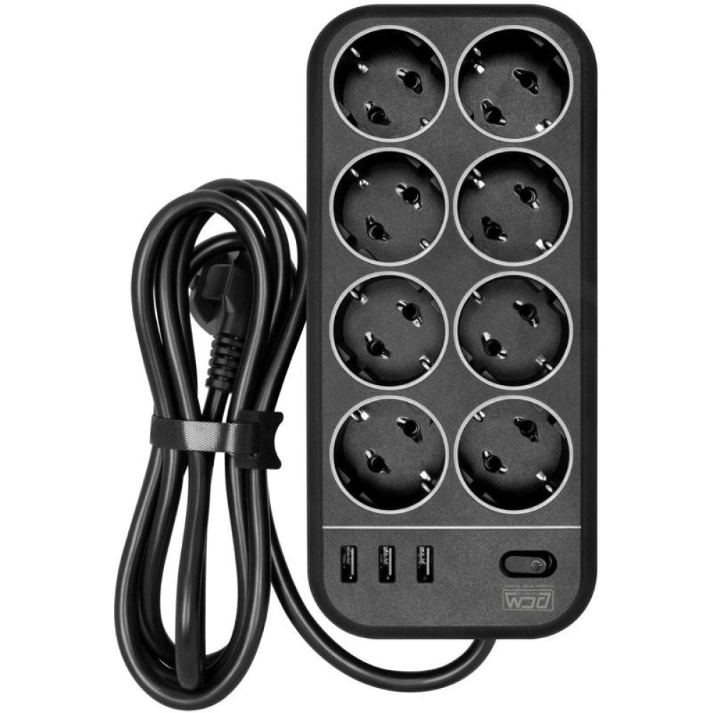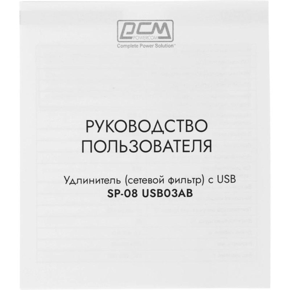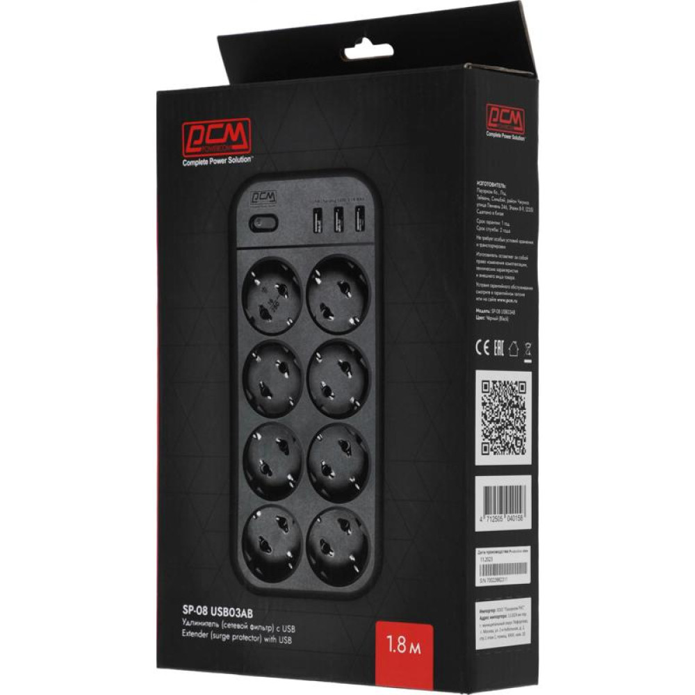 Сетевой фильтр Powercom SP-08 USB03AB 1.8м 1.8м (8 розеток) черный (коробка)