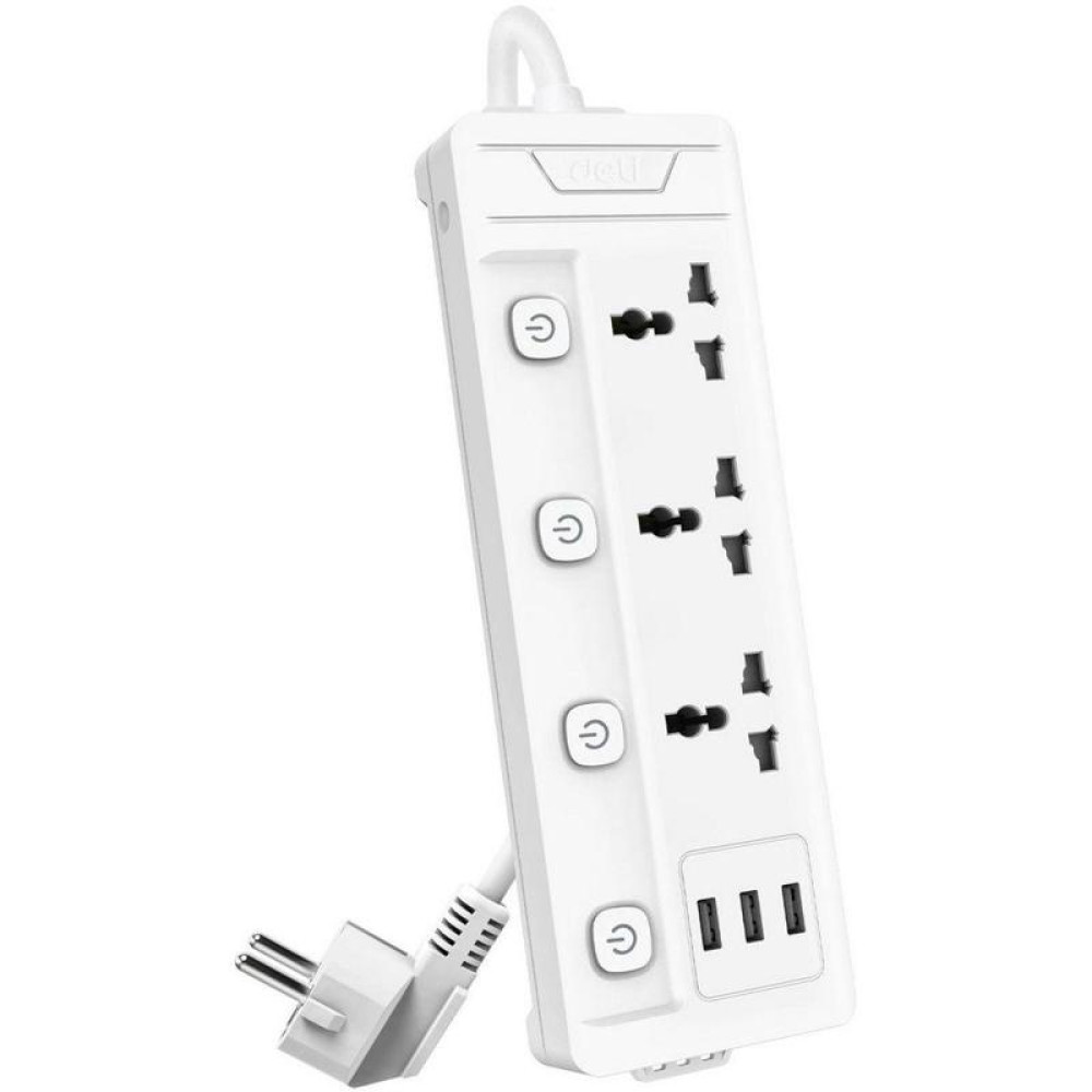 Сетевой фильтр универсальный Deli ET410/ 3розетки + 3USB , 2 м