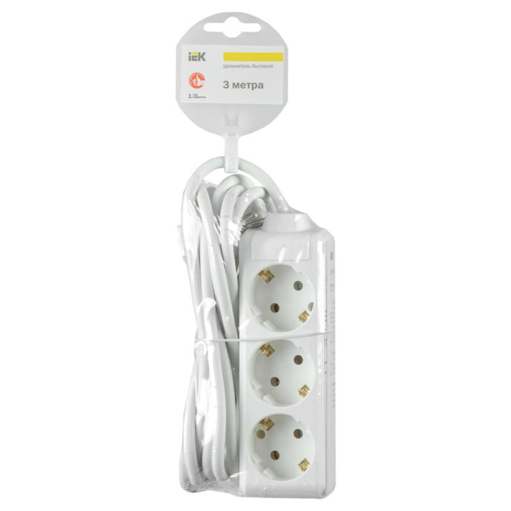 Сетевой удлинитель IEK У03 3м (3 розетки) белый (пакет ПЭ)