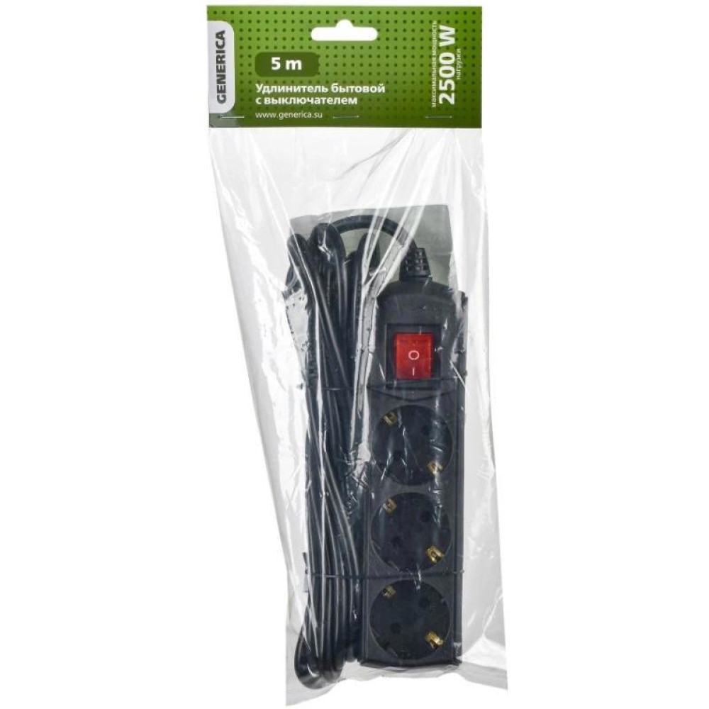 Сетевой удлинитель IEK У03В 5м (3 розетки) черный (пакет ПЭ)
