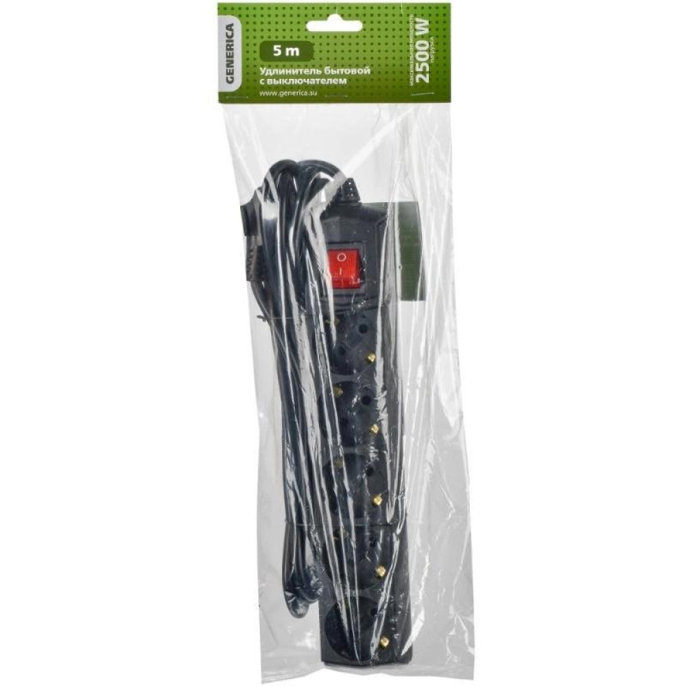 Сетевой удлинитель IEK У05В 5м (5 розеток) черный (пакет ПЭ)