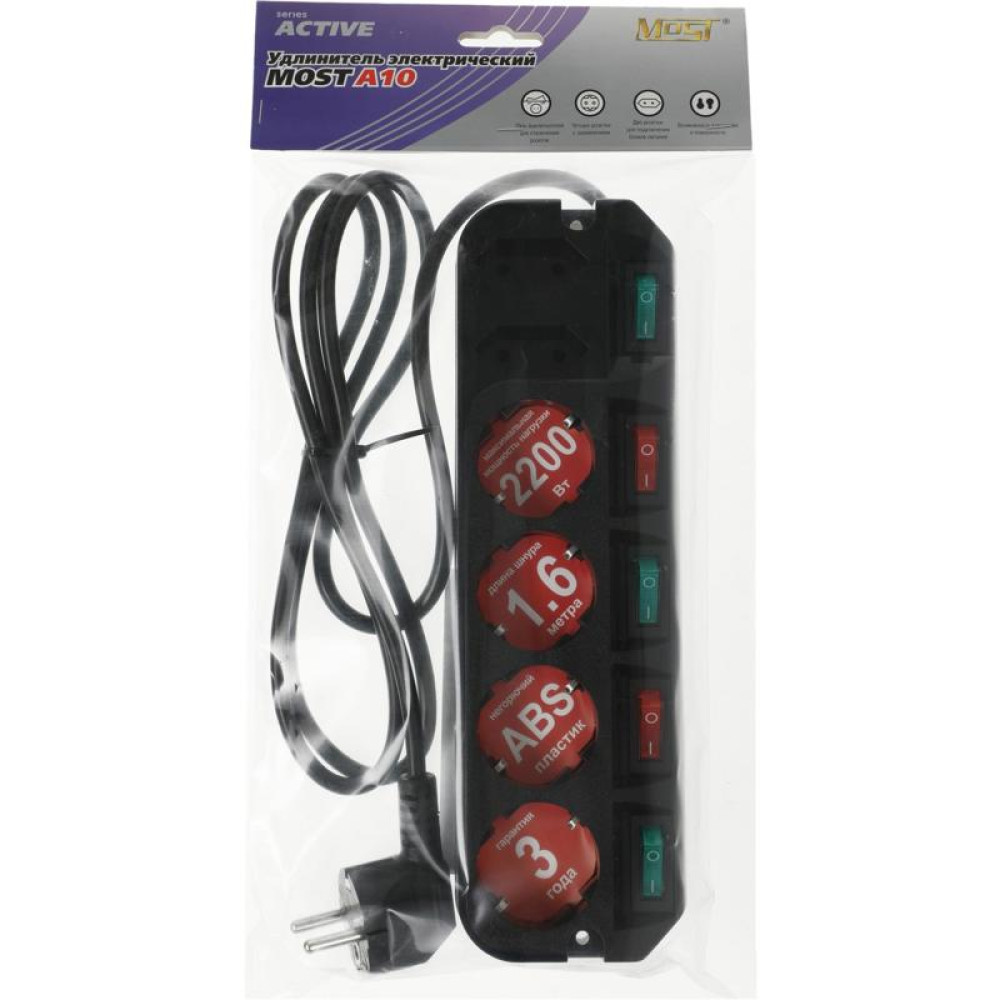 Сетевой удлинитель Most A10 1.6м (6 розеток) черный (пакет ПЭ)