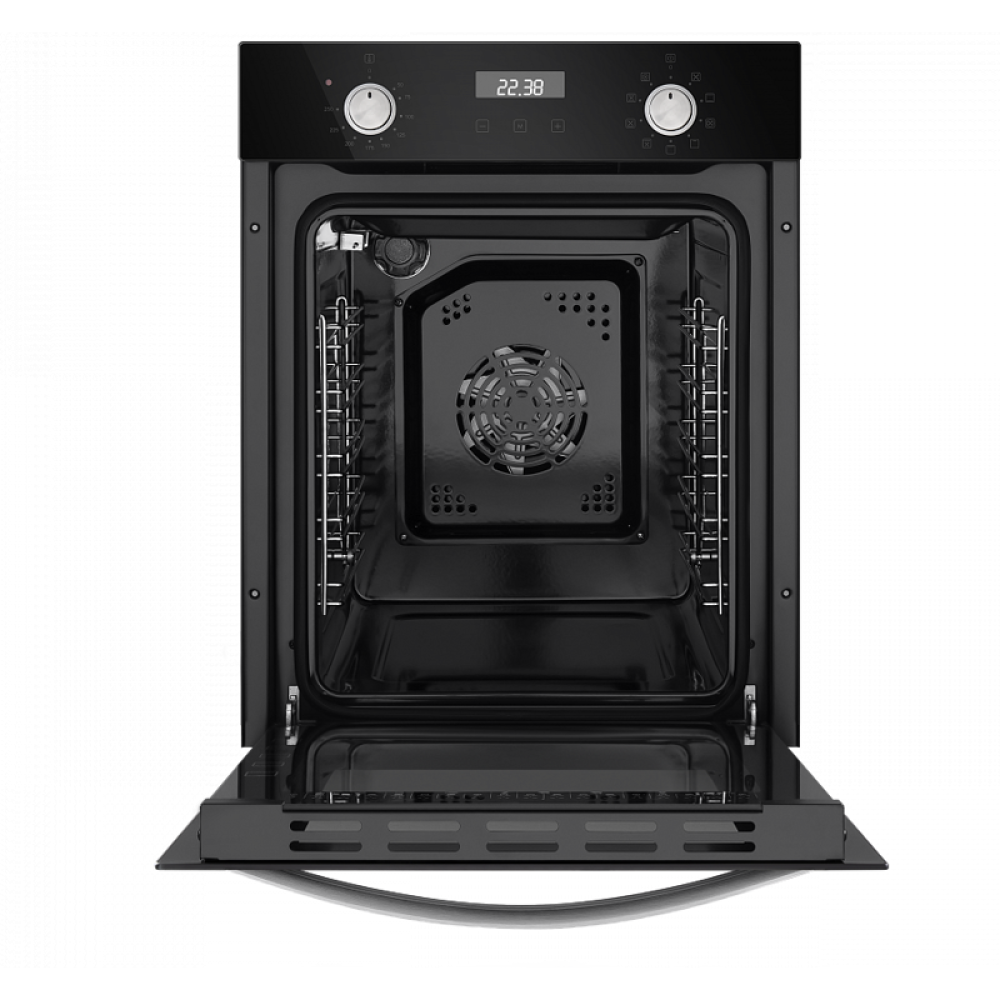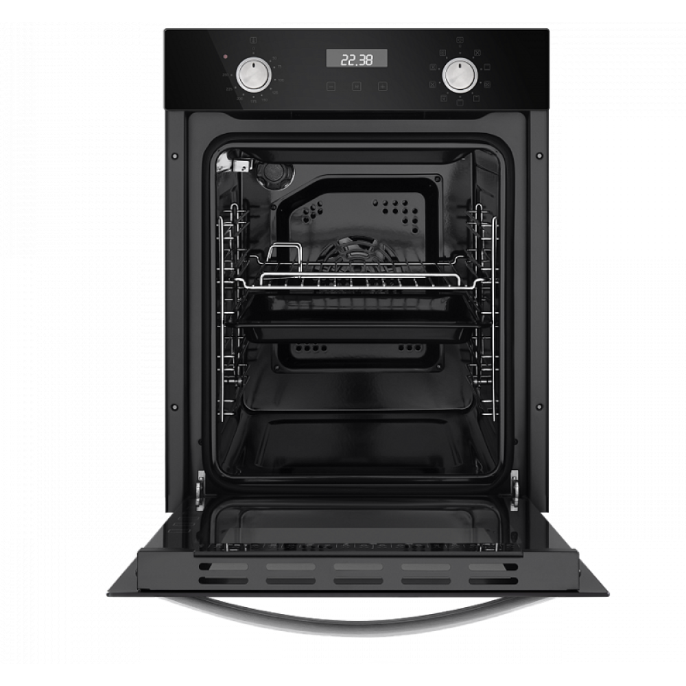 Независимый тип установки, класс энергопотребления А, 10 основных режимов, электронное управление, дисплей, двойное стекло дверцы, металлическая ручка дверцы, холодный фронт, эмаль легкой очистки, объем 51 л.