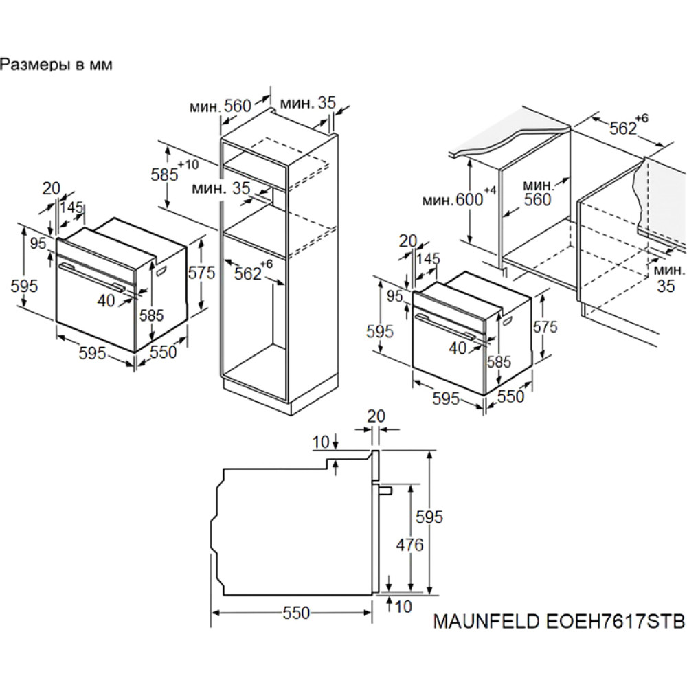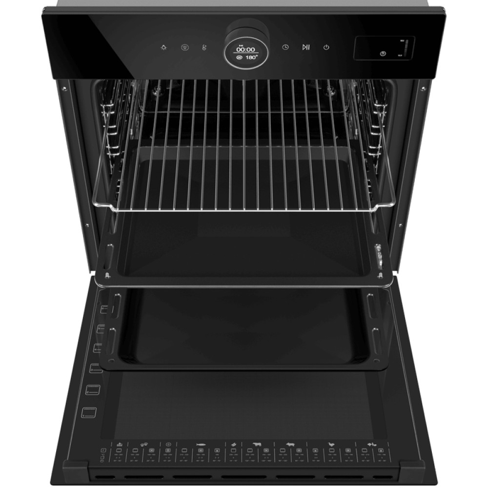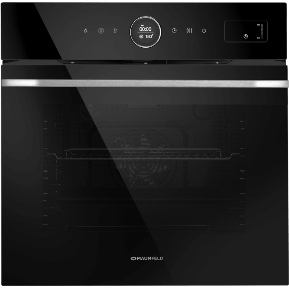 • Шкаф духовой электрический MAUNFELD/ Шкаф духовой электрический с паром, 76 л, 595х595х605 мм, 15 режимов, сенсорное управление, очистка паром, гриль, таймер, конвекция, телескопические направляющие, черный
