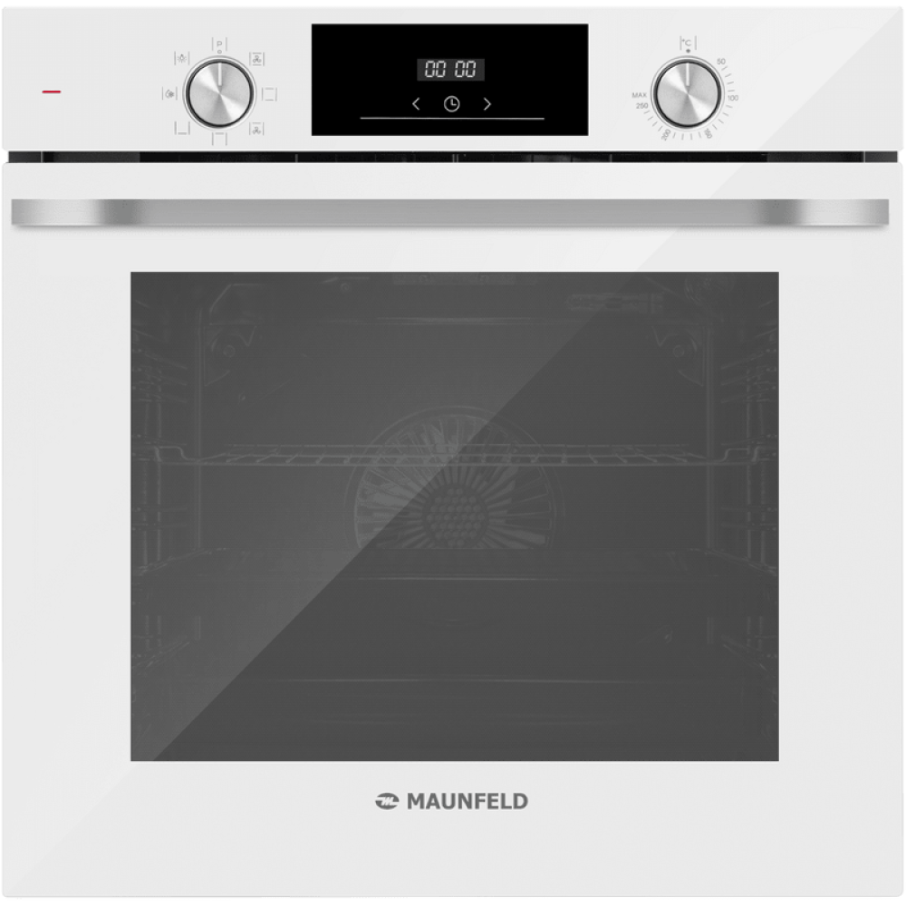 Шкаф духовой MAUNFELD/ 60 см, 78 л, 7 режимов, таймер, гидролизная очистка, дисплей, цвет белый, фурнитура: серебристый цвет
