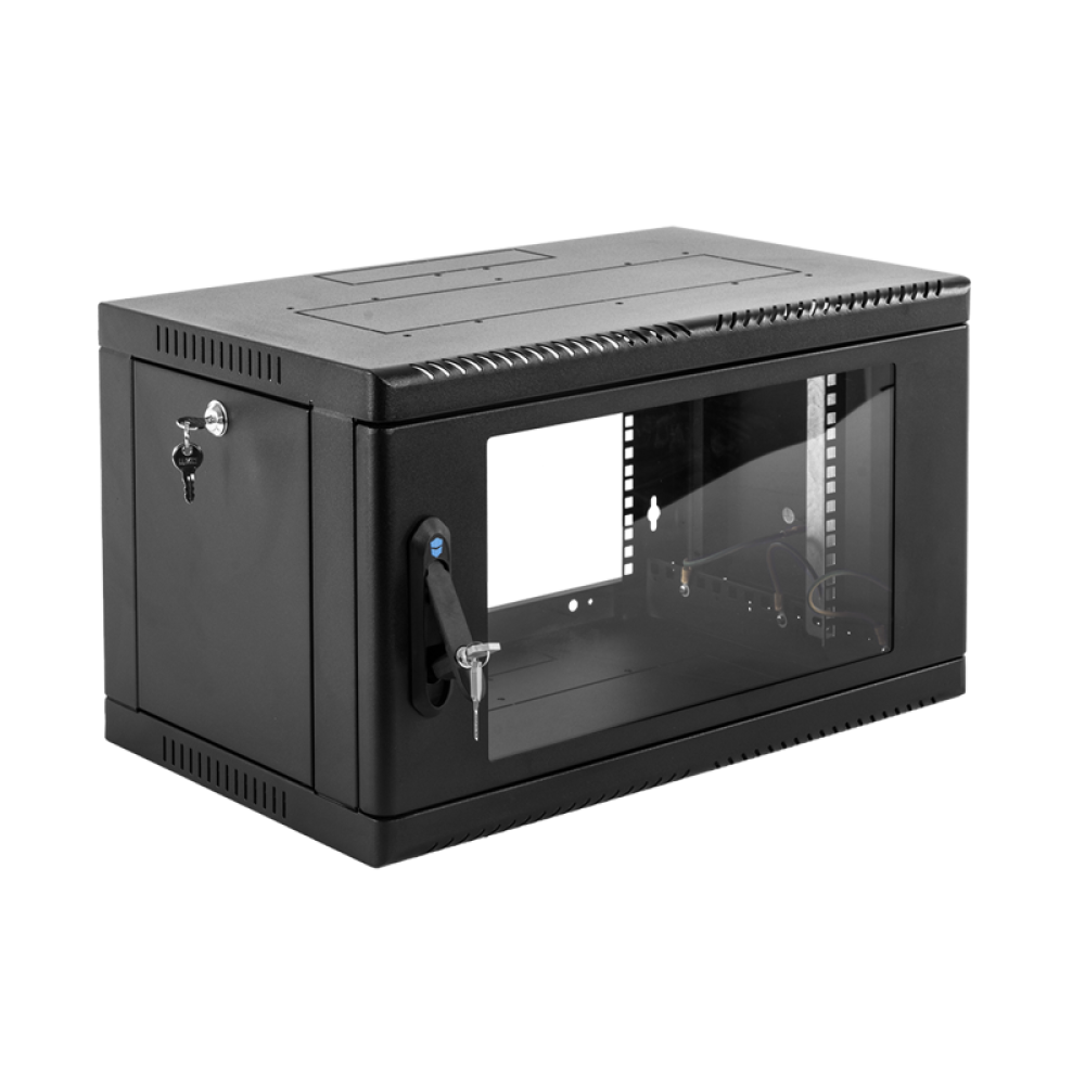 Шкаф коммутационный ЦМО (ШРН-6.500-9005) настенный 6U 600x500мм пер.дв.стекл 200кг черный 470мм 180град.