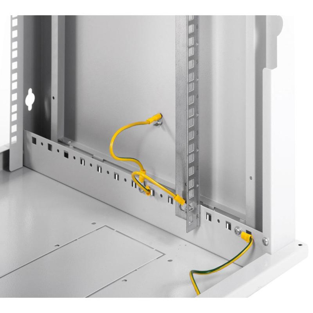 Настенный разборный шкаф 19" серии ШРН-ЭКОНОМ предназначен для размещения активного и пассивного телекоммуникационного оборудования. Шкаф выполнен в соответствии с требованиями стандарта IEC 60 297. Устройство шкафа обеспечивает возможность установки системы несущих конструкций 482,6 мм по ГОСТ 28601.1 (19” по МЭК 297). Вид климатического исполнения О4.2 по ГОСТ 15150 с предельными рабочими температурами воздуха при эксплуатации от 1 до 45 °С и относительной влажности не более 80 % при 20 °С. Особенности шкафа серии ШРН-ЭКОНОМ: – поставляется в компактной упаковке, что позволяет минимизировать затраты на транспортировку и хранение; – имеет полностью разборную конструкцию и состоит из крыши, дна, двух передних направляющих, двери, двух съёмных боковых стенок с точечными замками и системы заземления; – распределённая статическая нагрузка составляет от 65 до 85 кг в зависимости от глубины шкафа; – комплектуется как металлической дверью, так и дверью со стеклом; – возможна установка двери как с правой, так и с левой стороны; – возможна установка двух дополнительных юнитовых направляющих ШРН-ВН-Х; – вертикальные направляющие регулируются по глубине; – в крыше и дне предусмотрены два кабельных ввода размером 55 × 210 мм для установки щёточных вводов КВ-Щ-55.210А; – возможна установка вентиляторных модулей типа R-FAN в основание или крышу шкафа; – возможна установка задней стенки А-ШРН-х; – для крепления оборудования используется комплект монтажный КМ-2-25. Производитель оставляет за собой право вносить изменения в конструкцию изделия без ухудшения его функциональных характеристик.