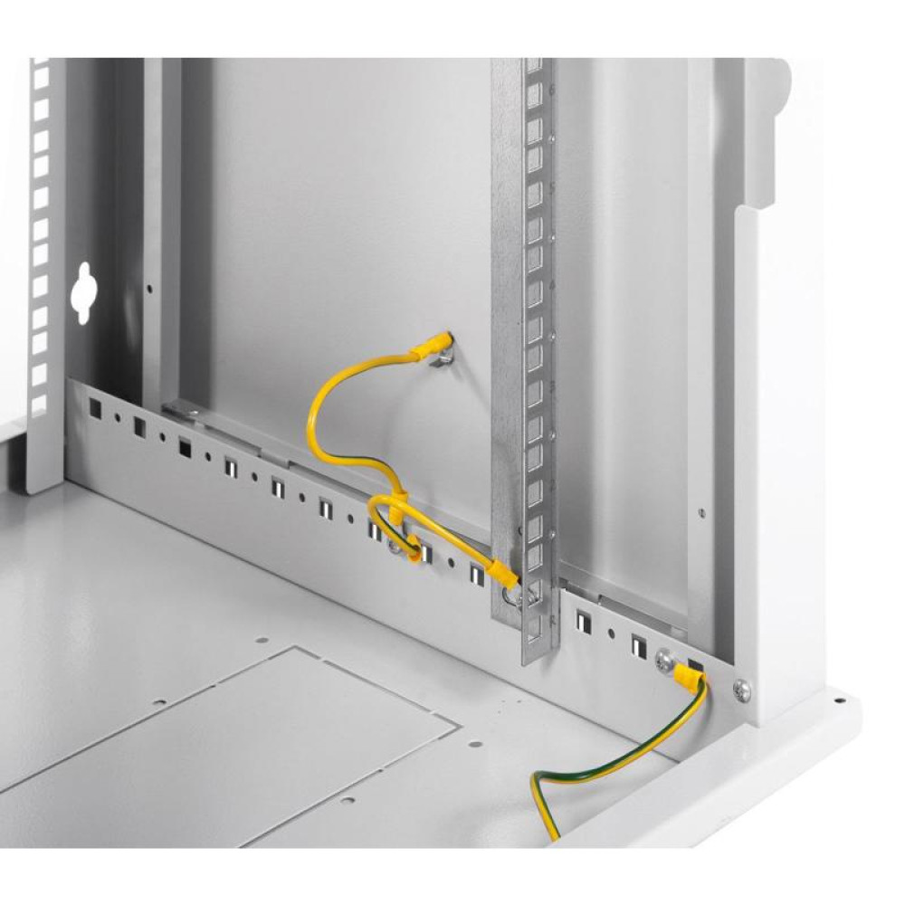 Настенный разборный шкаф 19" серии ШРН-ЭКОНОМ предназначен для размещения активного и пассивного телекоммуникационного оборудования. Шкаф выполнен в соответствии с требованиями стандарта IEC 60 297. Устройство шкафа обеспечивает возможность установки системы несущих конструкций 482,6 мм по ГОСТ 28601.1 (19” по МЭК 297). Вид климатического исполнения О4.2 по ГОСТ 15150 с предельными рабочими температурами воздуха при эксплуатации от 1 до 45 °С и относительной влажности не более 80 % при 20 °С. Особенности шкафа серии ШРН-ЭКОНОМ: – поставляется в компактной упаковке, что позволяет минимизировать затраты на транспортировку и хранение; – имеет полностью разборную конструкцию и состоит из крыши, дна, двух передних направляющих, двери, двух съёмных боковых стенок с точечными замками и системы заземления; – распределённая статическая нагрузка составляет от 65 до 85 кг в зависимости от глубины шкафа; – комплектуется как металлической дверью, так и дверью со стеклом; – возможна установка двери как с правой, так и с левой стороны; – возможна установка двух дополнительных юнитовых направляющих ШРН-ВН-Х; – вертикальные направляющие регулируются по глубине; – в крыше и дне предусмотрены два кабельных ввода размером 55 × 210 мм для установки щёточных вводов КВ-Щ-55.210А; – возможна установка вентиляторных модулей типа R-FAN в основание или крышу шкафа; – возможна установка задней стенки А-ШРН-х; – для крепления оборудования используется комплект монтажный КМ-2-25. Производитель оставляет за собой право вносить изменения в конструкцию изделия без ухудшения его функциональных характеристик.