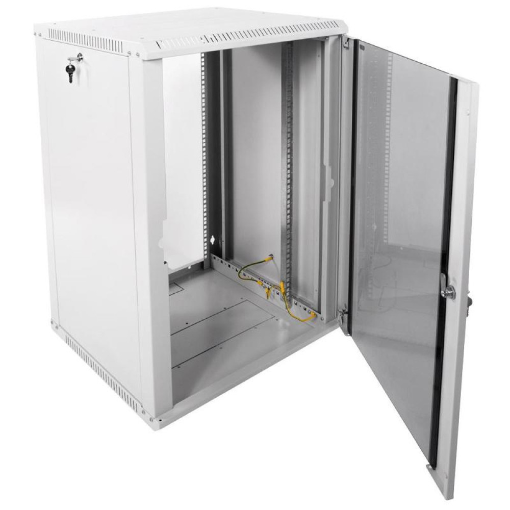 Шкаф коммутационный ЦМО ШРН-ЭКОНОМ (ШРН-Э-18.500) настенный 18U 600x520мм пер.дв.стекл 75кг серый 470мм 27.7кг 180град. 930мм