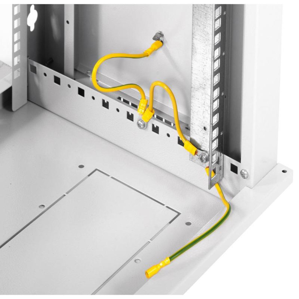 Настенный разборный шкаф 19" серии ШРН-ЭКОНОМ предназначен для размещения активного и пассивного телекоммуникационного оборудования. Шкаф выполнен в соответствии с требованиями стандарта IEC 60 297. Устройство шкафа обеспечивает возможность установки системы несущих конструкций 482,6 мм по ГОСТ 28601.1 (19” по МЭК 297). Вид климатического исполнения О4.2 по ГОСТ 15150 с предельными рабочими температурами воздуха при эксплуатации от 1 до 45 °С и относительной влажности не более 80 % при 20 °С. Особенности шкафа серии ШРН-ЭКОНОМ: – поставляется в компактной упаковке, что позволяет минимизировать затраты на транспортировку и хранение; – имеет полностью разборную конструкцию и состоит из крыши, дна, двух передних направляющих, двери, двух съёмных боковых стенок с точечными замками и системы заземления; – распределённая статическая нагрузка составляет от 65 до 85 кг в зависимости от глубины шкафа; – комплектуется как металлической дверью, так и дверью со стеклом; – возможна установка двери как с правой, так и с левой стороны; – возможна установка двух дополнительных юнитовых направляющих ШРН-ВН-Х; – вертикальные направляющие регулируются по глубине; – в крыше и дне предусмотрены два кабельных ввода размером 55 × 210 мм для установки щёточных вводов КВ-Щ-55.210А; – возможна установка вентиляторных модулей типа R-FAN в основание или крышу шкафа; – возможна установка задней стенки А-ШРН-х; – для крепления оборудования используется комплект монтажный КМ-2-25. Производитель оставляет за собой право вносить изменения в конструкцию изделия без ухудшения его функциональных характеристик.