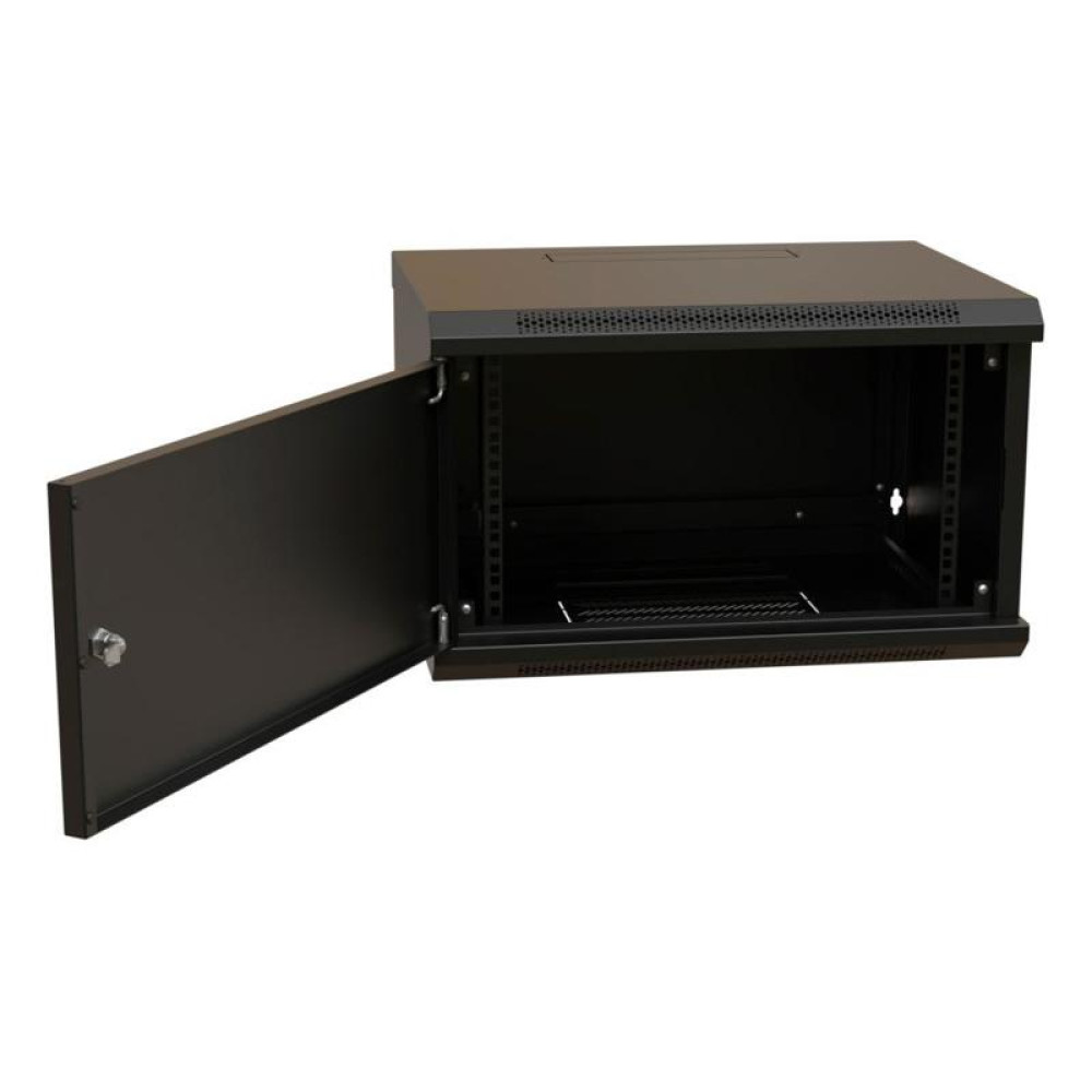 Шкаф коммутационный WRline (WR-TW-0945-SR-RAL9004) настенный 9U 600x450мм пер.дв.металл 2 бок.пан. направл.под винты 60кг черный 350мм 500мм IP20 сталь