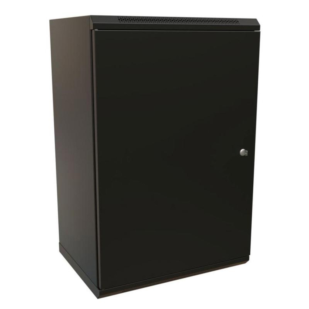Шкаф коммутационный WRline (WR-TW-1845-SR-RAL9004) настенный 18U 600x450мм пер.дв.металл 2 бок.пан. направл.под винты 60кг черный 370мм 908мм IP20 сталь