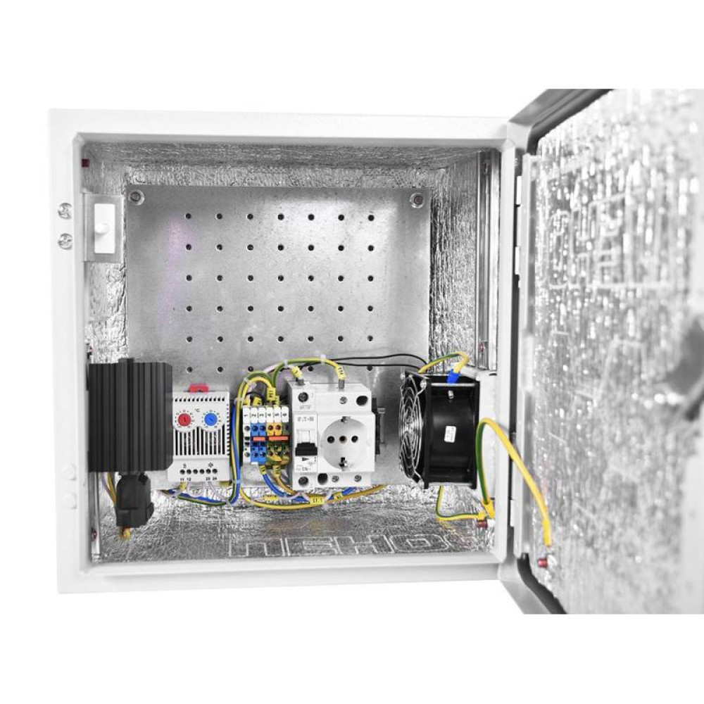Шкаф монтажный ЦМО Эконом (ШТВ-НЭ-4.4.21-3ААА-Т2) настенный 400x210мм пер.дв.стал.лист задн.дв.спл.стал.лист несъемн.бок.пан. серый 180мм 400мм IP66 уличный всепогодный с нагревателем с силовыми розетками 60Вт