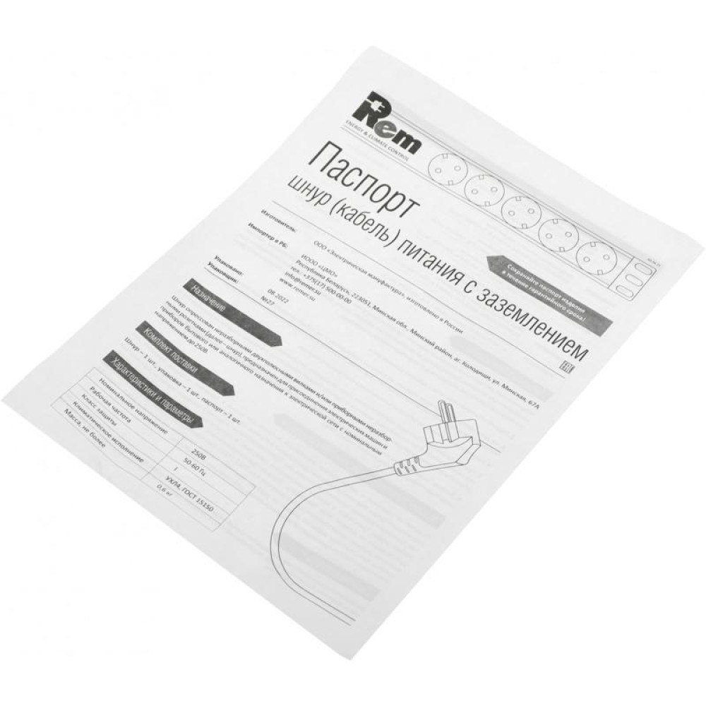 Шнур питания Rem R-16-Cord-C19-C20-1.8 C19-C20 проводник.:3x1.5мм2 1.8м 220В 16А (упак.:1шт) черный