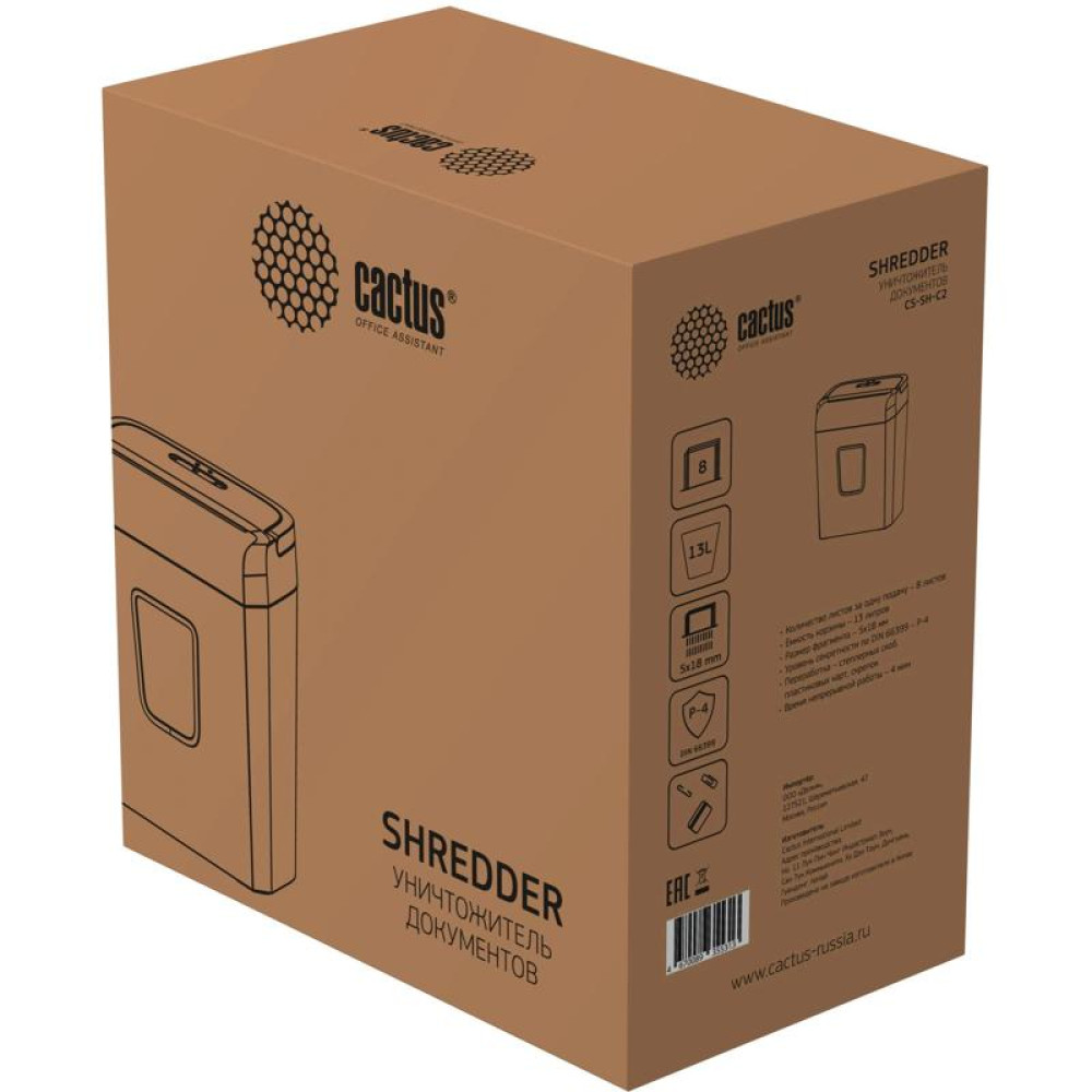 Шредер Cactus CS-SH-C2 черный (секр.P-4) фрагменты 8лист. 13лтр. скрепки скобы пл.карты