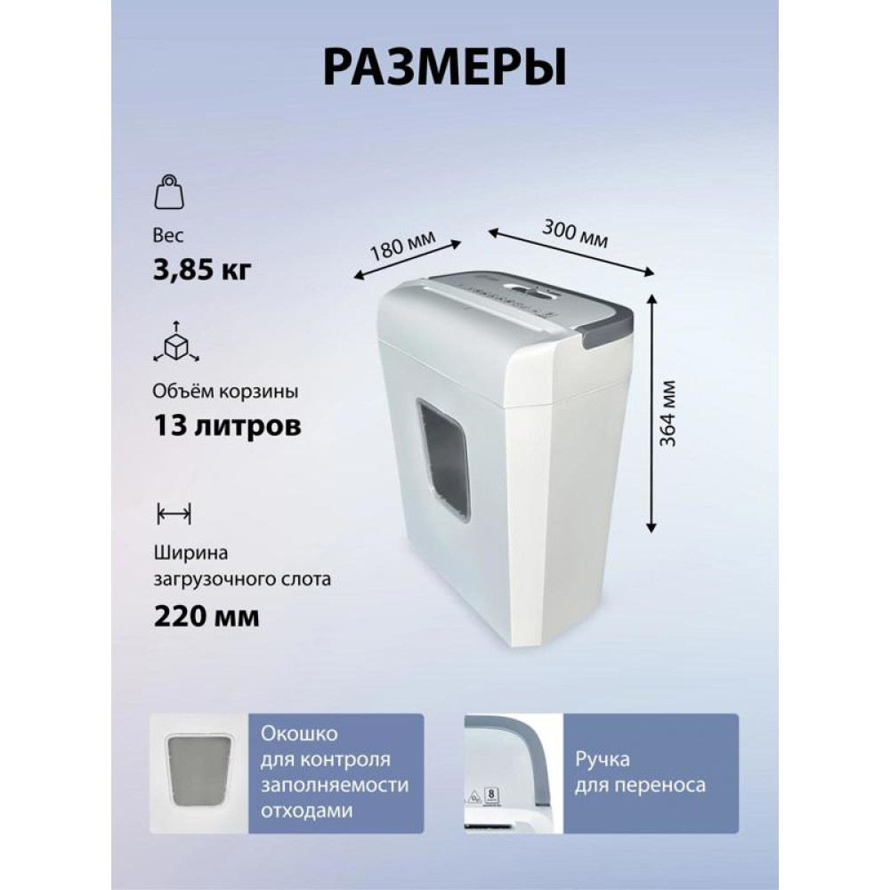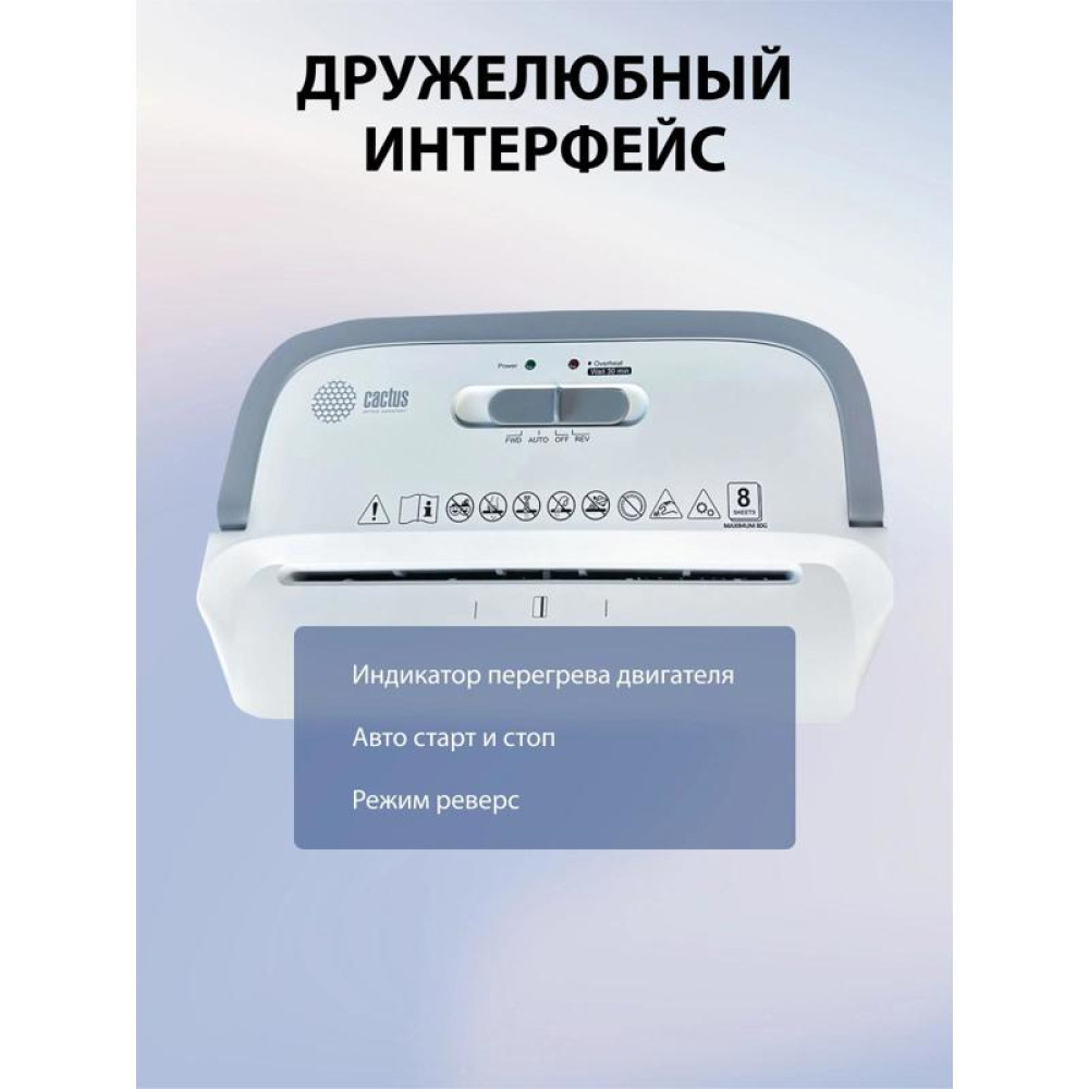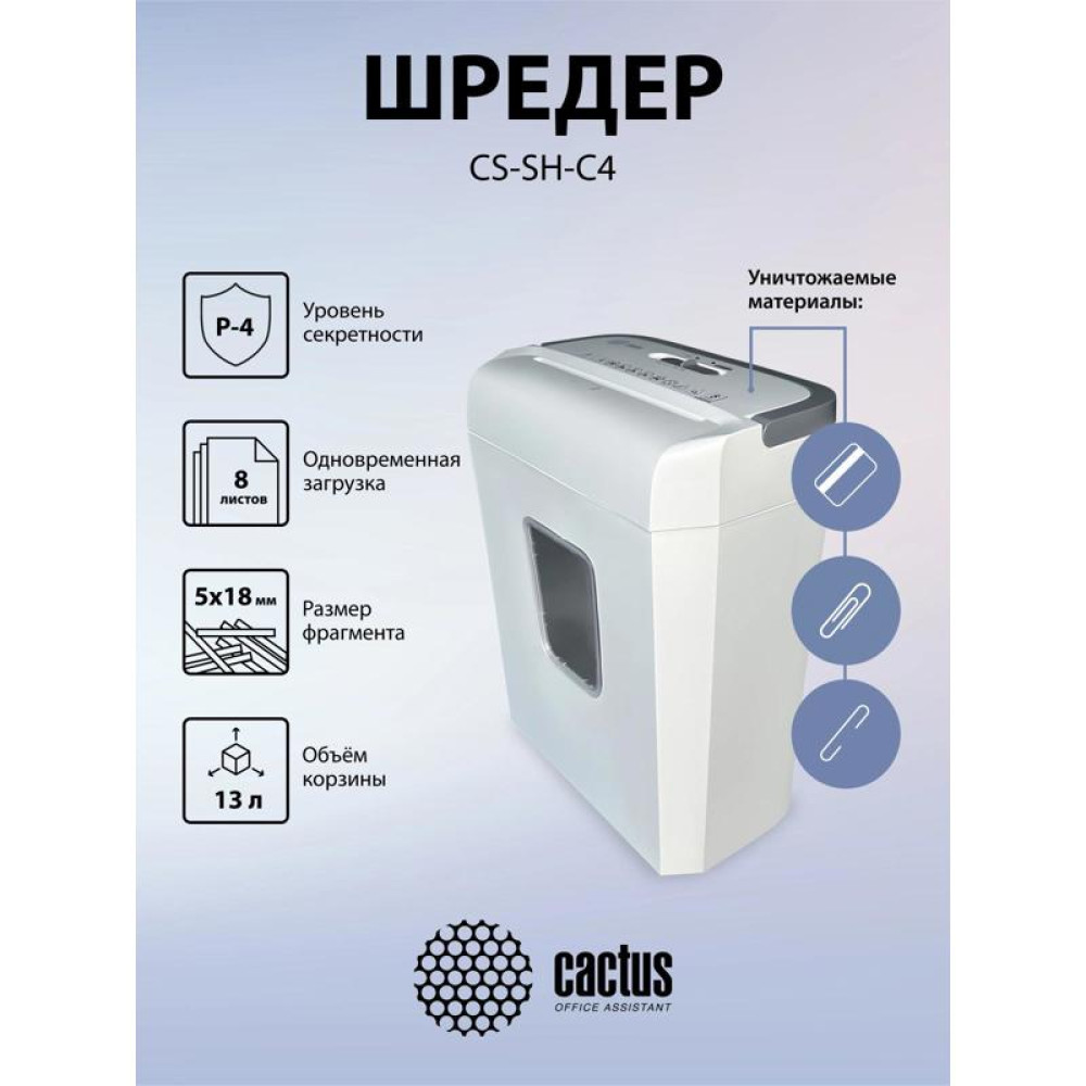 Шредер Cactus CS-SH-C4 белый (секр.P-4) фрагменты 8лист. 13лтр. скрепки скобы пл.карты
