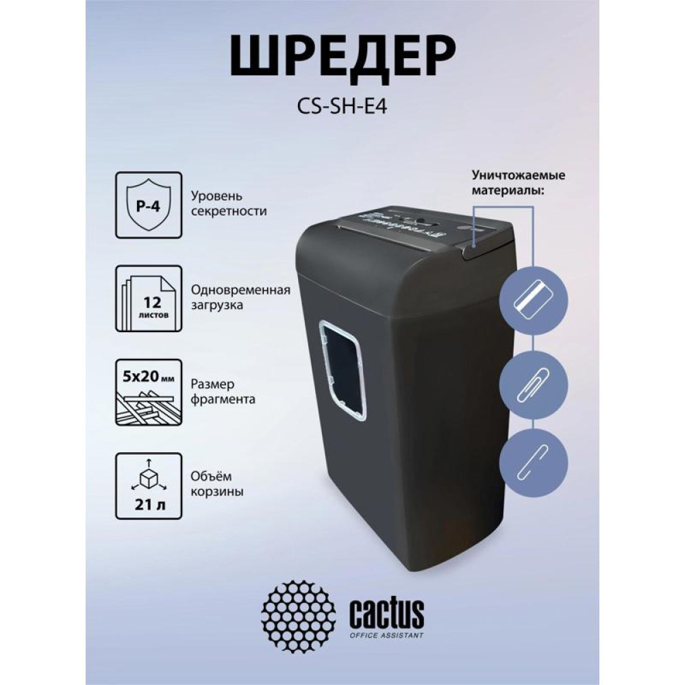 Шредер Cactus CS-SH-E4 (секр.P-4) фрагменты 12лист. 21лтр. скрепки скобы пл.карты