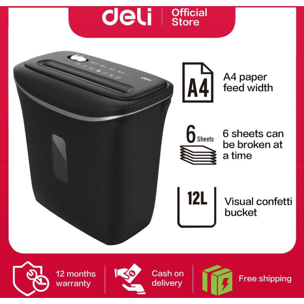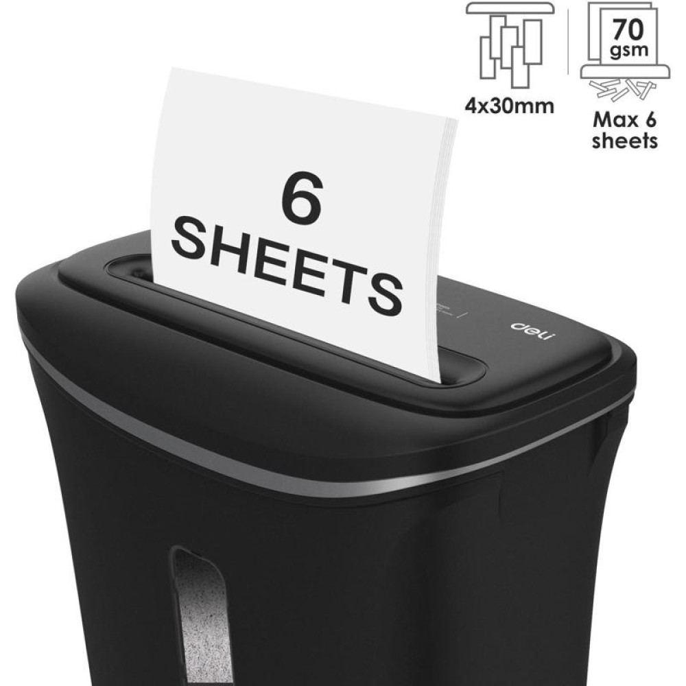Шредер Deli E9945 (секр.P-4) фрагменты 6 лист. 12 л, скобы/пл.карты