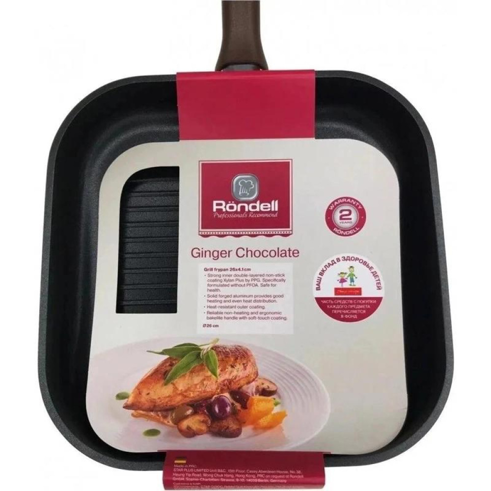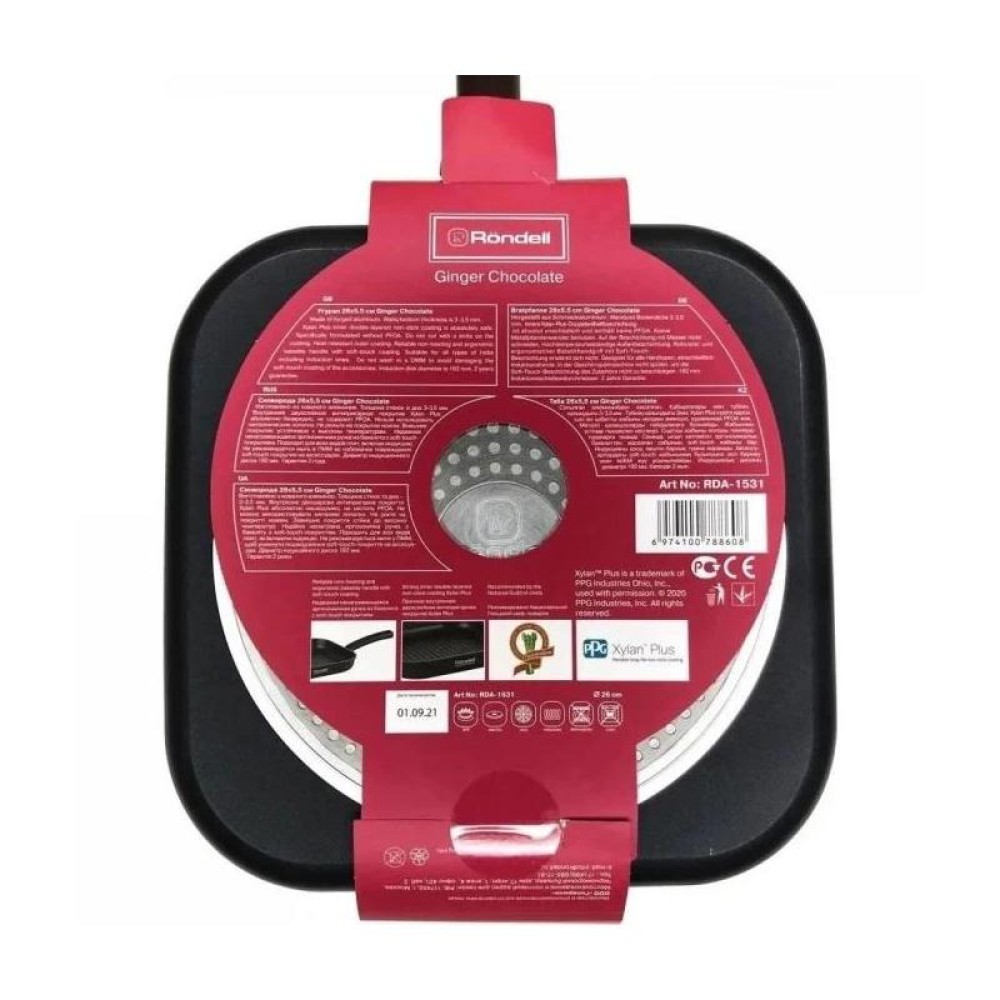 Сковорода-гриль/ Сковорода-гриль Rondell Ginger Chocolate RDA-1531 квадратная 26см покрытие: Xylan Plus ручка несъемная (без крышки) черный