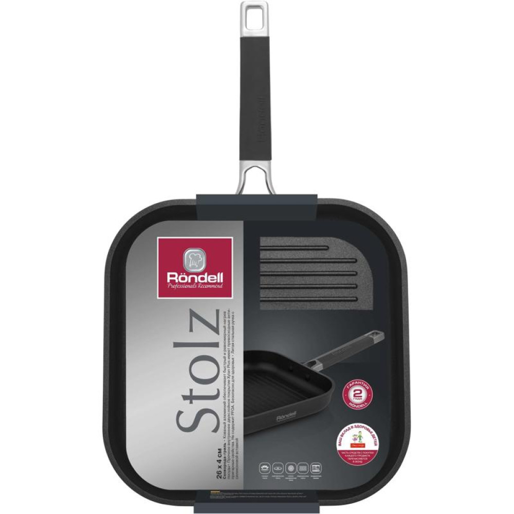 Сковорода-гриль/ Сковорода-гриль Rondell Stolz RDA-1769 квадратная 26см покрытие: Xylan Plus ручка несъемная (без крышки) серый