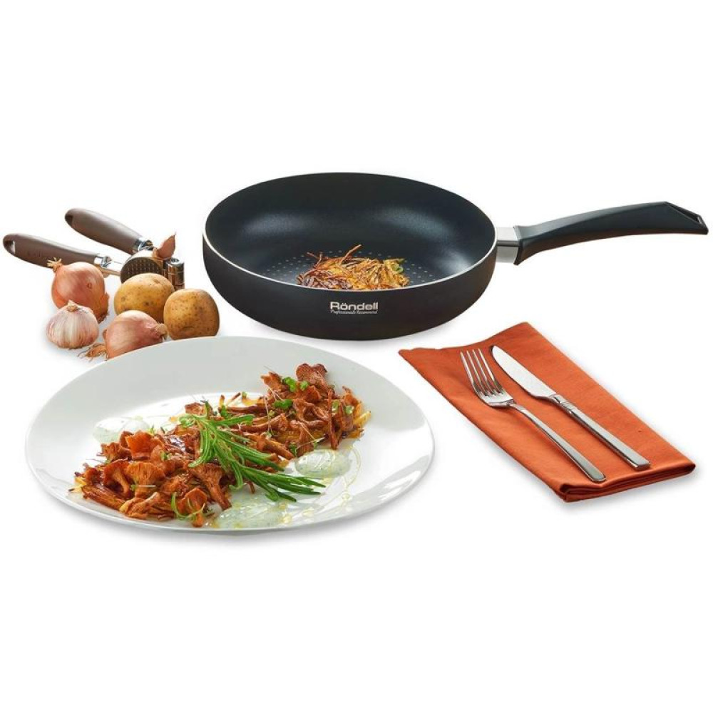 Сковорода/ Сковорода Rondell Arabesco RDA-874 круглая 28см покрытие: Xylan Plus ручка несъемная (с крышкой) серый