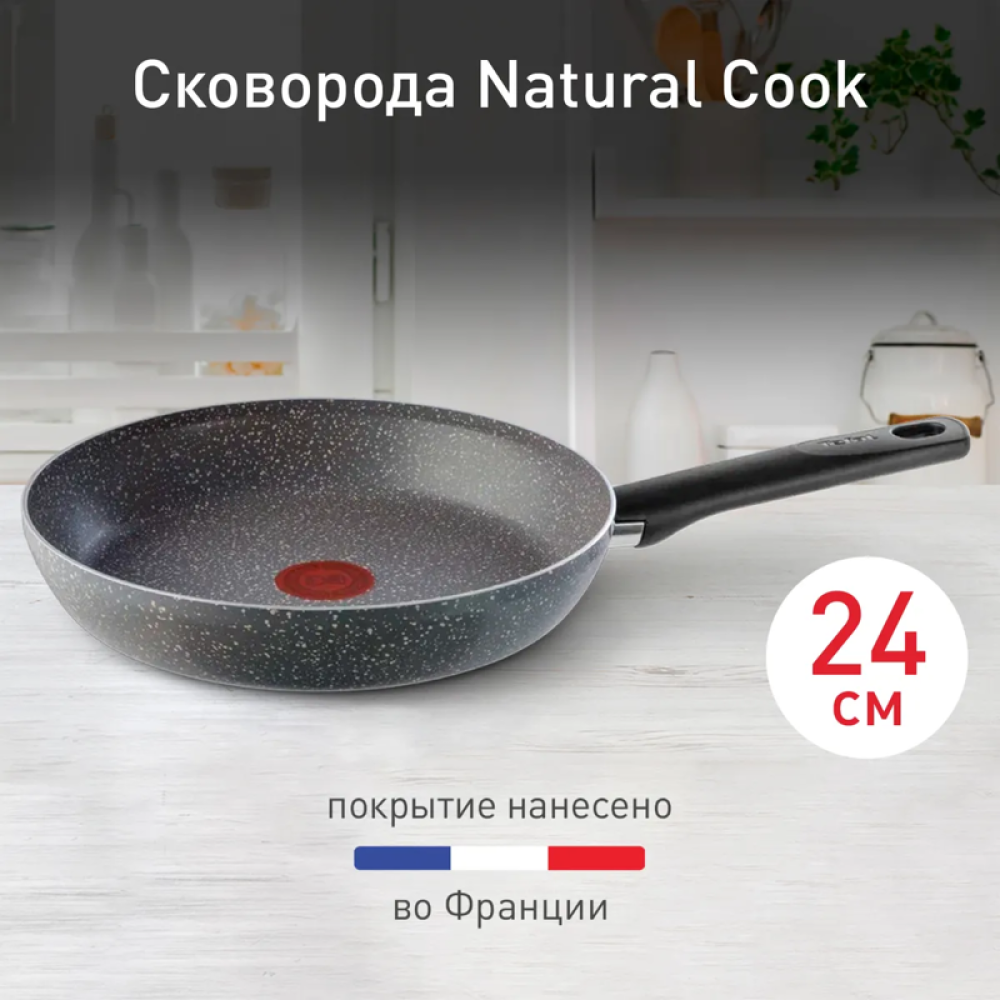 Tefal Natural Cook 04213124 - это универсальная круглая сковорода диаметром 24 см, отлично подходящая для приготовления разнообразных блюд. Она оснащена прочным антипригарным покрытием Mineralia, которое обеспечивает легкое приготовление и уход за сковородой.Преимущества:• Прочное антипригарное покрытие: Покрытие Mineralia отличается высокой стойкостью к царапинам и повреждениям. Оно предотвращает прилипание продуктов, что делает приготовление более легким и удобным.• Универсальный размер: 24 см - отличный размер для приготовления разных блюд, от омлетов до мяса.• Удобная ручка: Несъемная ручка из бакелита обеспечивает комфортный хват и не нагревается во время готовки.