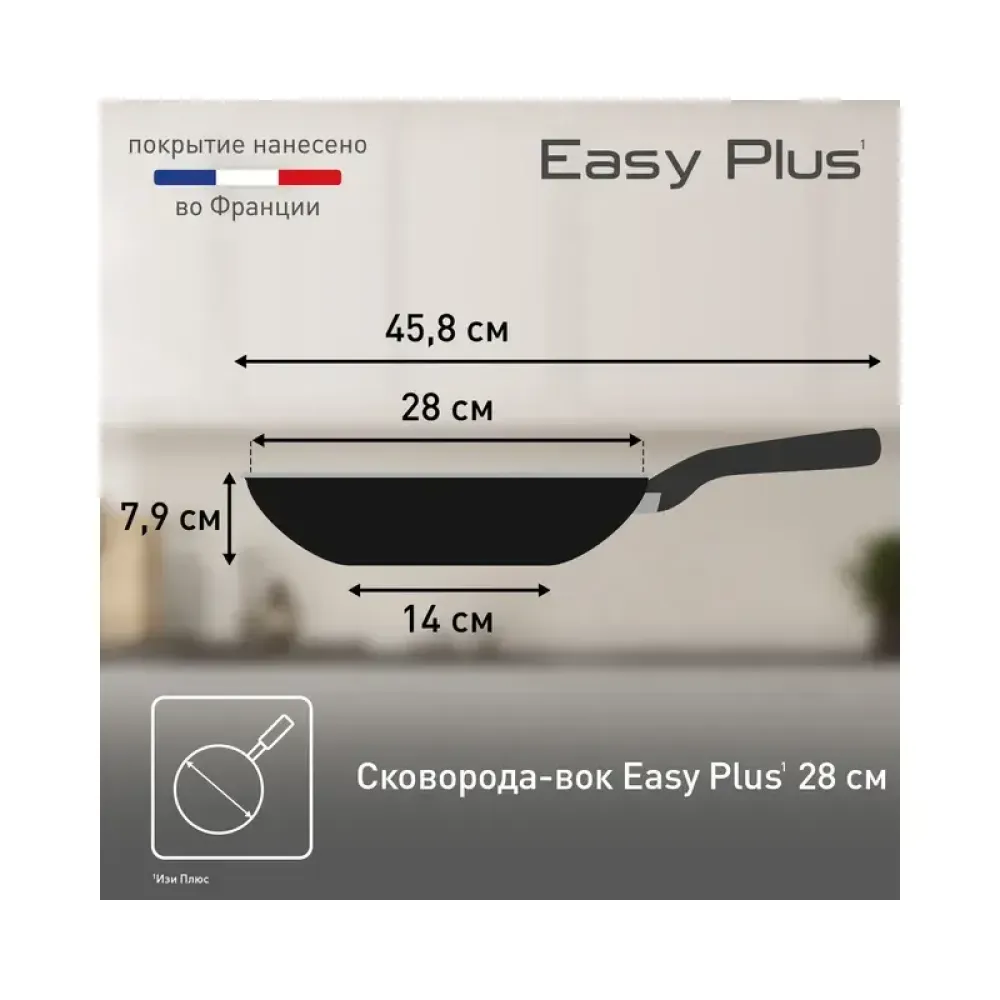 Сковорода-вок Tefal Easy Plus 28 см 04237628 — это отличный выбор для тех, кто ценит качество, удобство и долговечность в кухонной посуде.