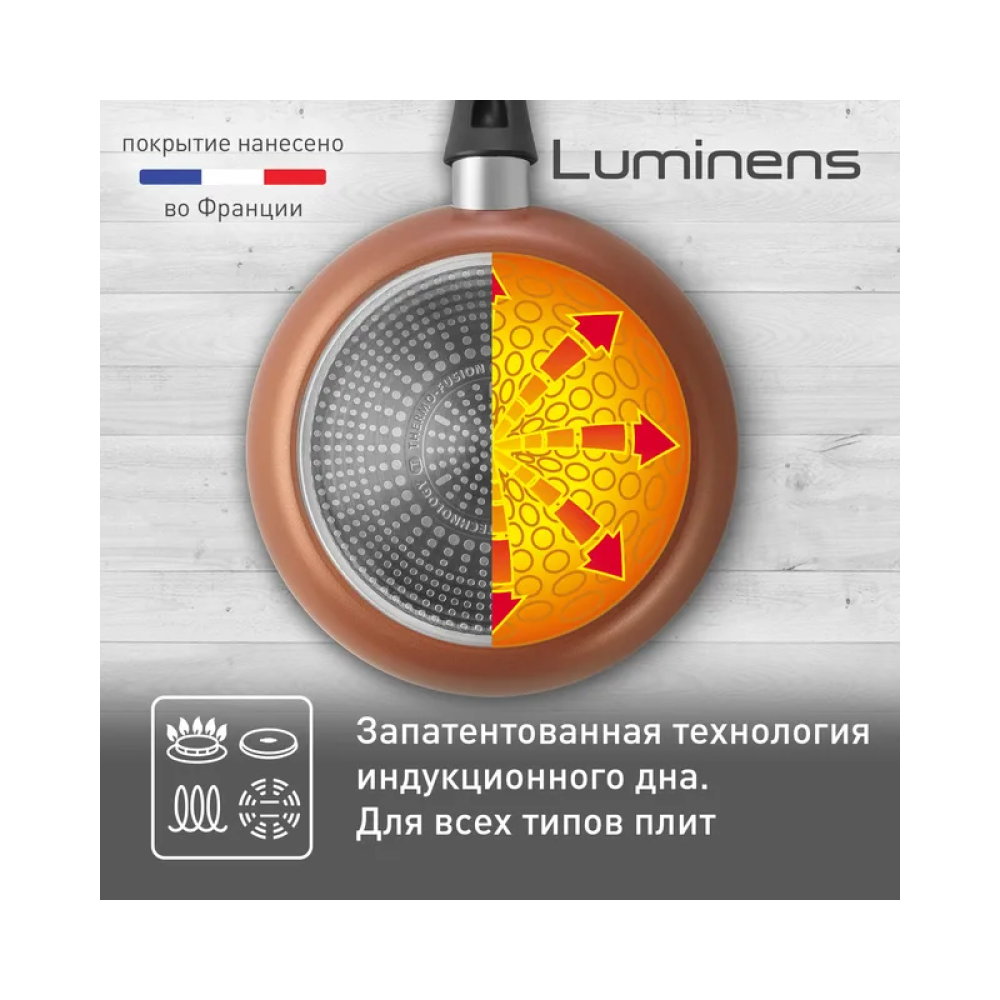 Сковорода Tefal Luminens 28 см 4229128 подходит для использования на всех типах плит, включая индукционные. Это делает ее универсальным инструментом для любой кухни, независимо от типа варочной поверхности. Благодаря этому, вы можете использовать сковороду на любой плите, что делает ее очень удобной и практичной.