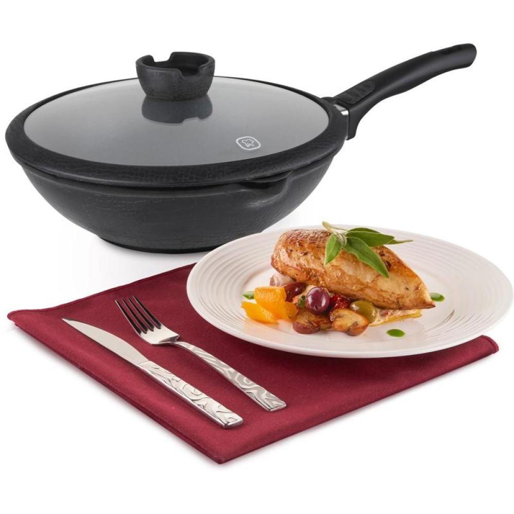 Сковорода ВОК (WOK)/ Сковорода ВОК (WOK) Rondell Escurion RDA-870 круглая 28см покрытие: антипригарное ручка съемная (с крышкой) черный