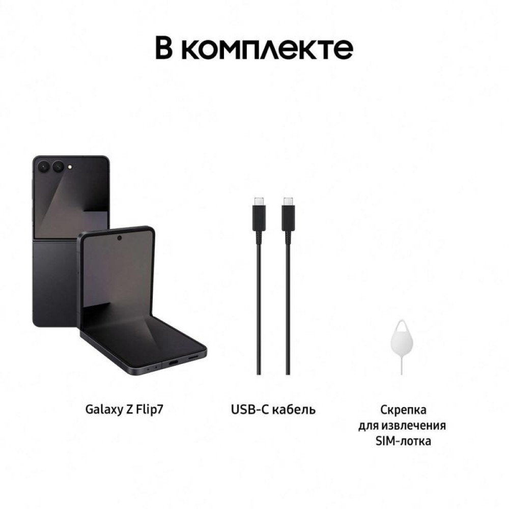 Смартфон Samsung SM-F766B Galaxy Z Flip7 256Gb 12Gb черный раскладной 3G 4G 1Sim 6.9" 1080x2520 Android 16 50Mpix 802.11 a/b/g/n/ac/ax/be NFC GPS GSM900/1800 GSM1900 Protect