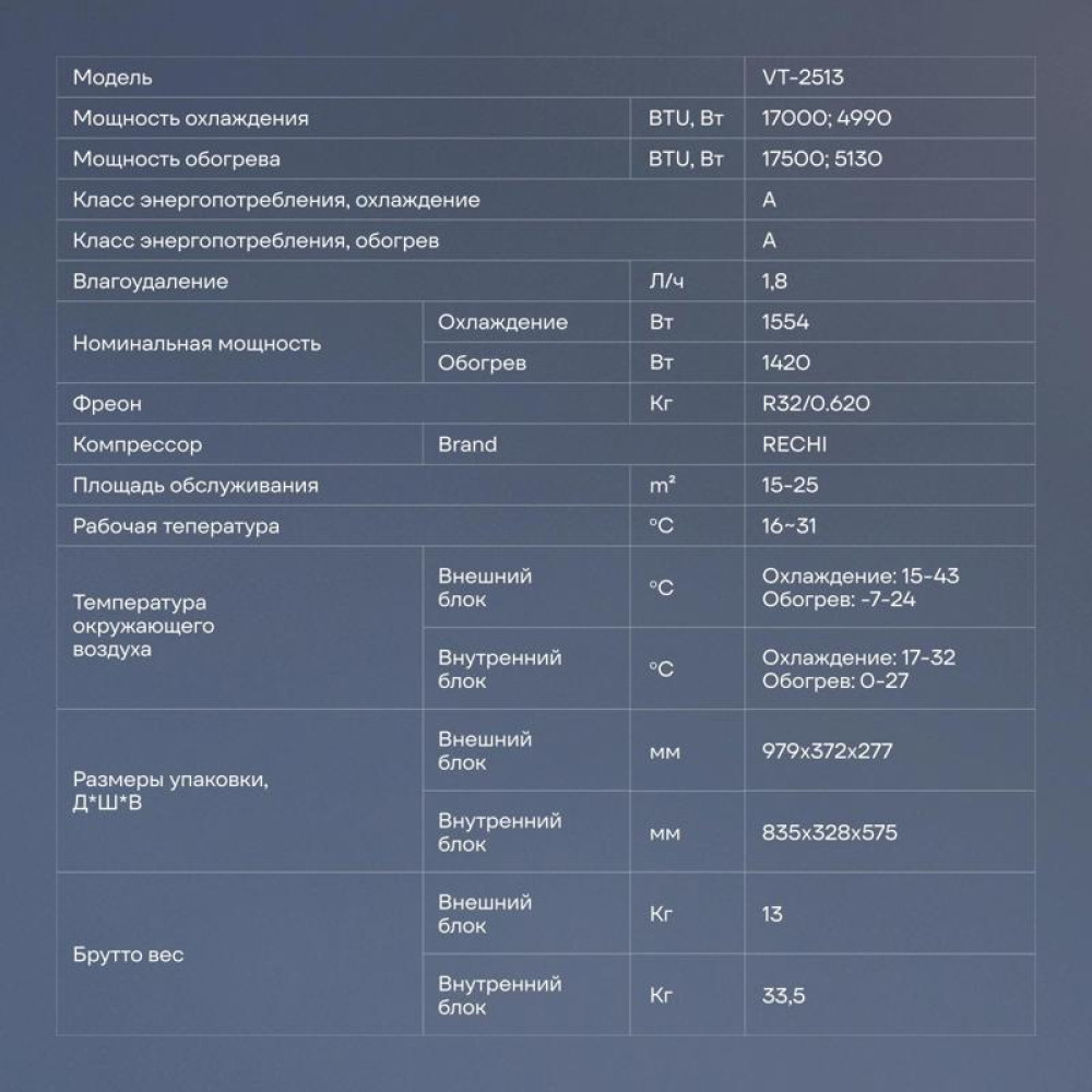 Производительность: 12000BTU, охлаждения 3.23 кВт, обогрева 3.52 кВт