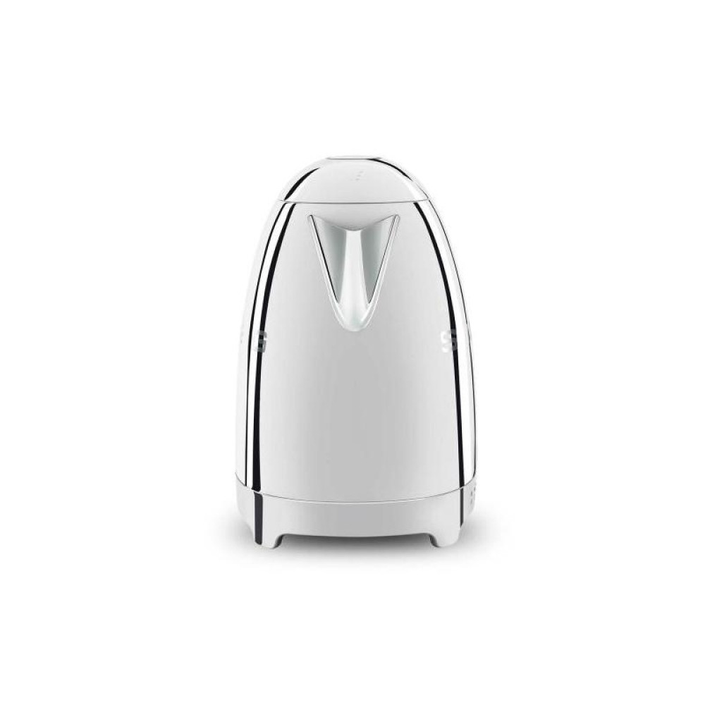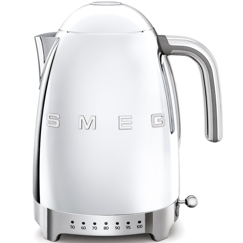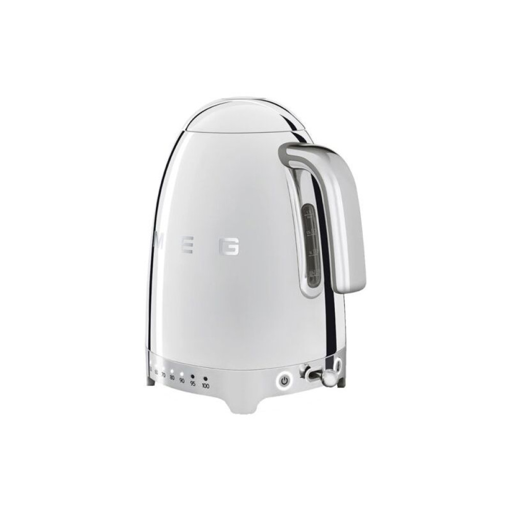 Электрический чайник Smeg KLF04SSEU имеет возможность регулировки температуры в пределах от 50 до 100°С. Прибор автоматически выключает в случае снятия с базы, а также при достижении температуры в 100°С. Корпус модели выполнен из отполированной нержавеющей стали, что придает чайнику определенный стиль. В базе предусмотрен отсек для хранения шнура.