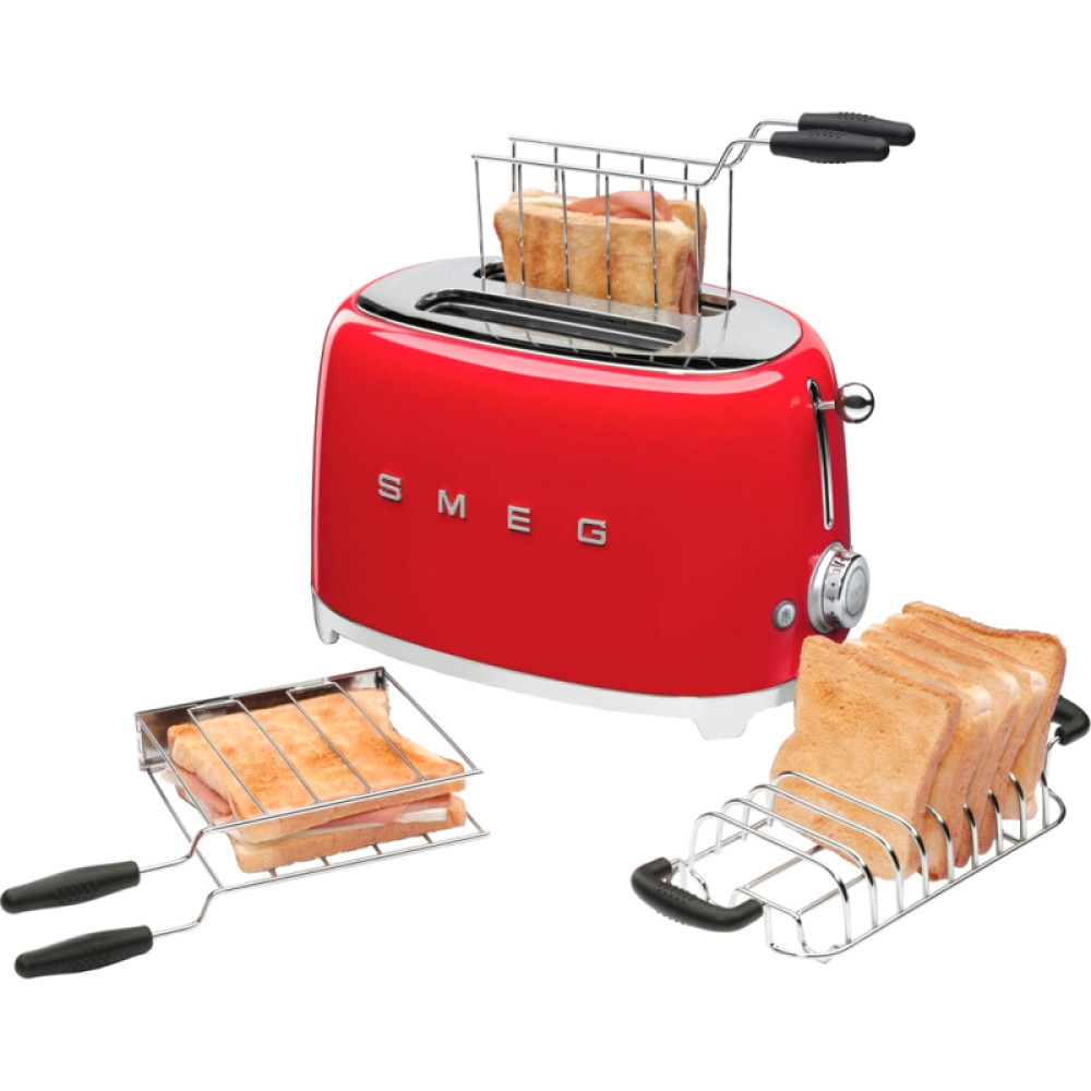 Стиль 50-х г.г, 2 ломтика, корпус из нержавеющей стали, 6 уровней поджаривания, красный
