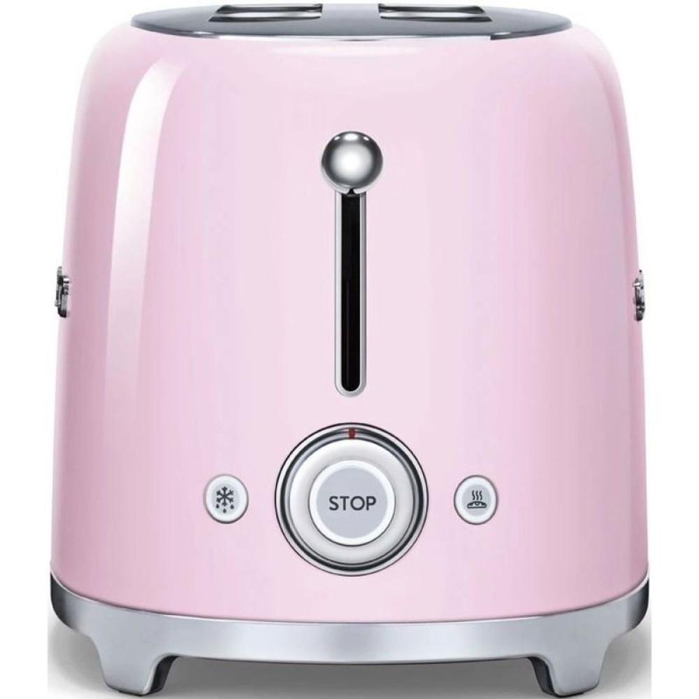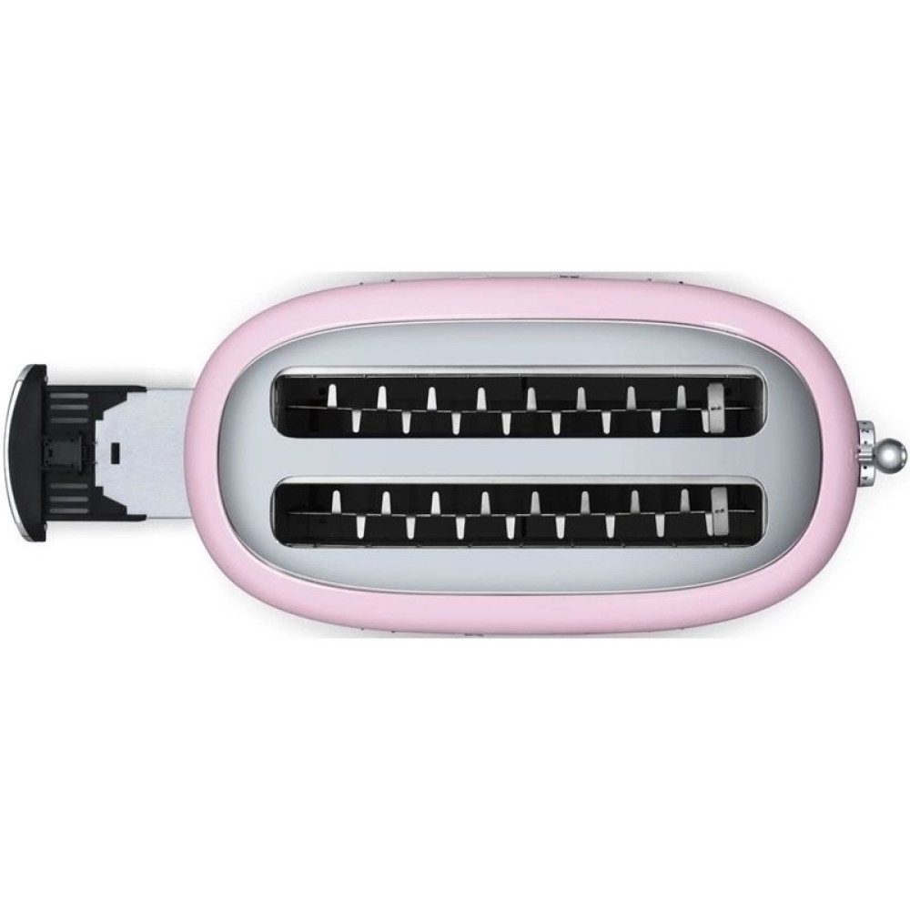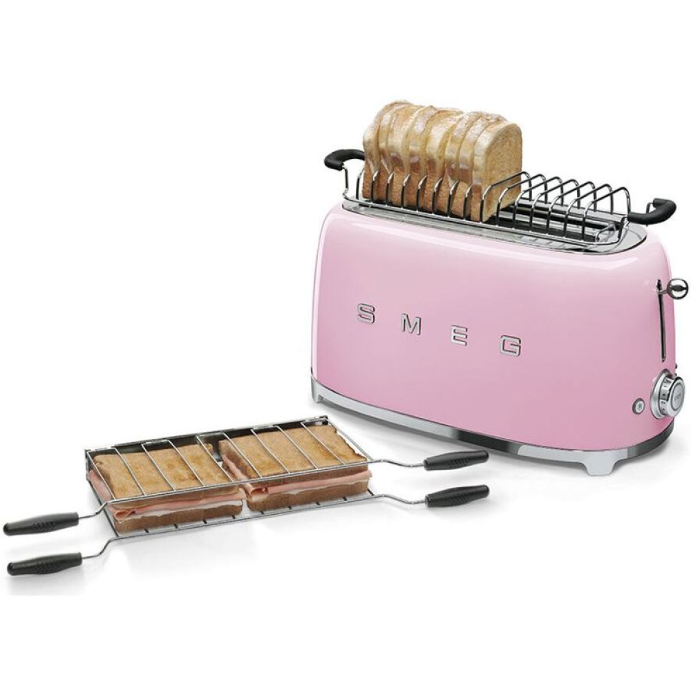 SMEG TSF02PKEU — это стильный тостер, выполненный в ретро-дизайне 50-х годов. Он сочетает в себе классический винтажный стиль и современные технологии, что делает его идеальным дополнением для любой кухни. Тостер имеет корпус из нержавеющей стали и розовый цвет, который придает ему уникальный и привлекательный вид. Он рассчитан на поджаривание 4 ломтиков хлеба одновременно и предлагает 6 уровней поджаривания, что позволяет выбрать оптимальный уровень для вашего вкуса.