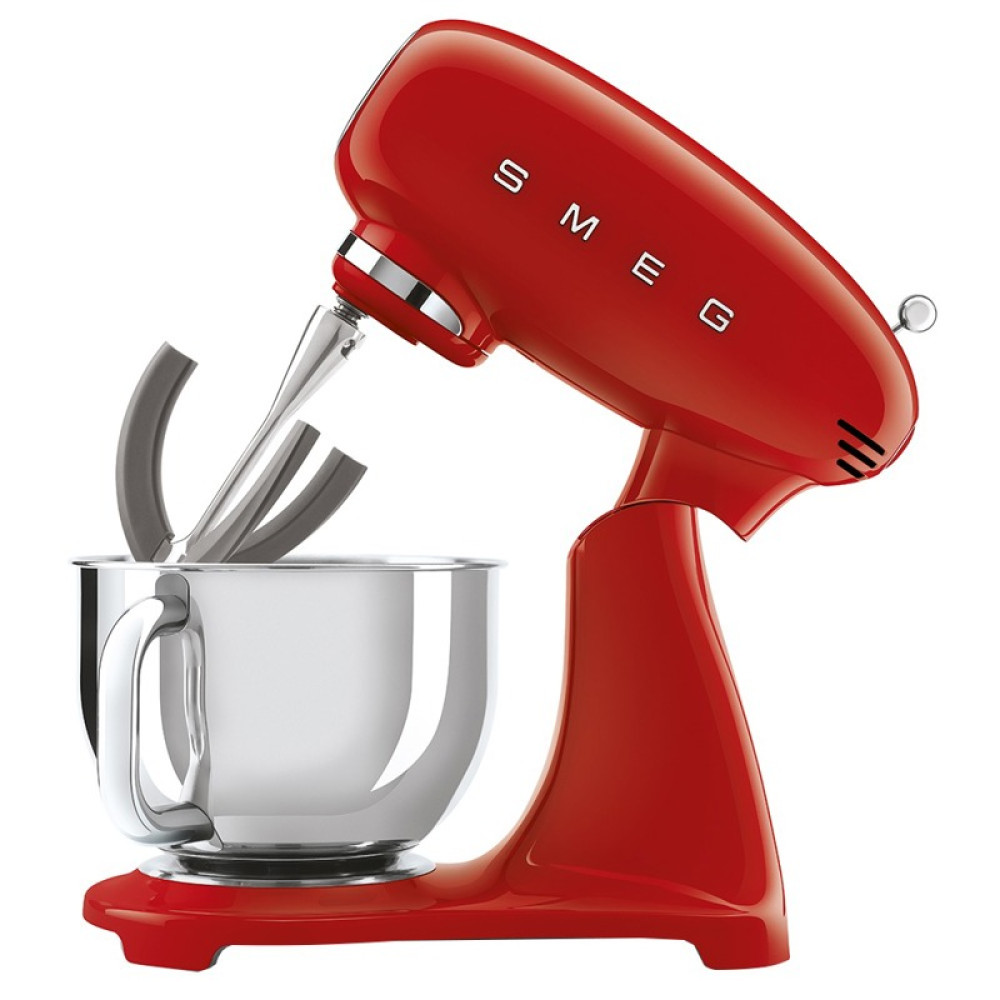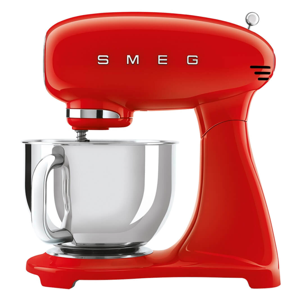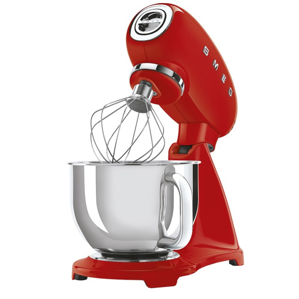 Благодаря красной расцветке миксер Smeg SMF03RDEU будет ярко выделяться на фоне любого интерьера. Металлическая чаша на 4.8 л позволит приготовить большой объем соуса, теста или крема. А планетарная система вращения будет гарантировать высокую скорость и качество замешивания.Прибор Smeg SMF03RDEU оснащен 10-ю скоростями, которые легко переключаются с помощью расположенного в верхней части корпуса рычага. Миксер поставляется с четырьмя насадками, среди которых вы найдете крюки для теста, 2 венчика и лопатку. Прозрачная защитная крышка с желобком для подачи ингредиентов позволит контролировать рабочий процесс и сохранить чистоту кухонного стола.