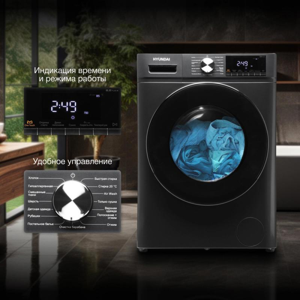 Стиральная машина Hyundai WFD8401 класс: B загр.фронтальная макс.:8кг (с сушкой) темно-серый инвертер