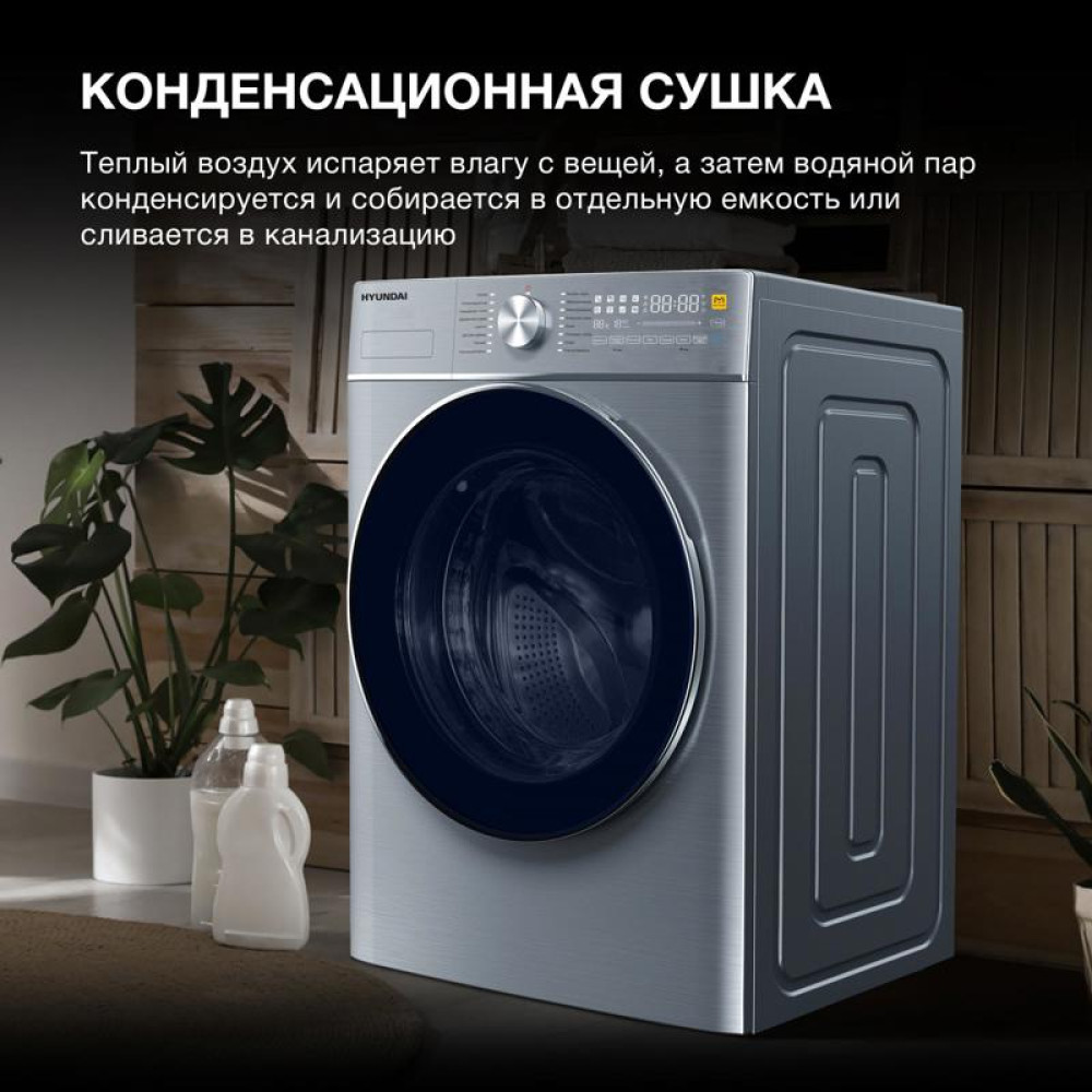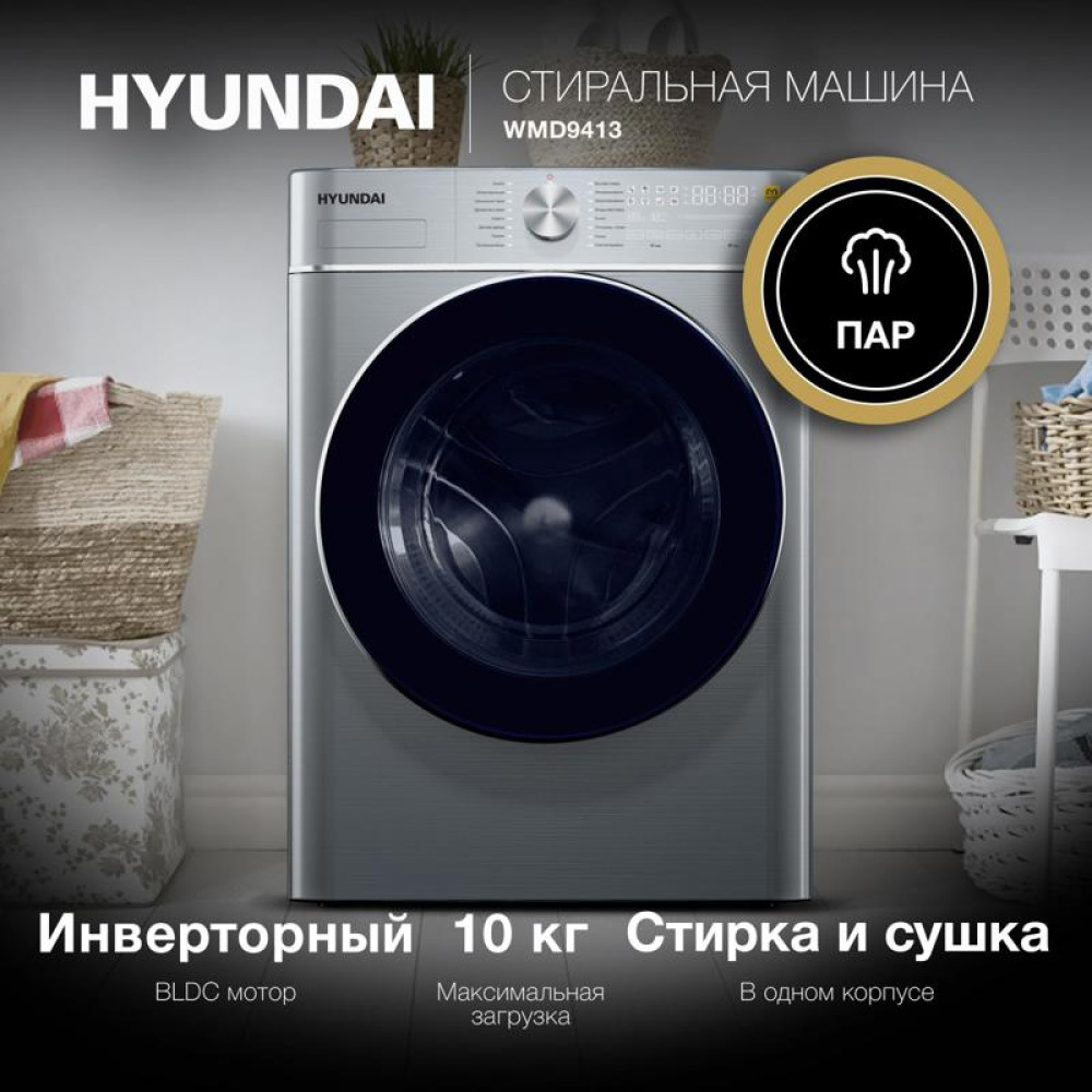 Стиральная машина Hyundai WMD9413 класс: B загр.фронтальная макс.:10кг (с сушкой) темно-серебристый инвертер
