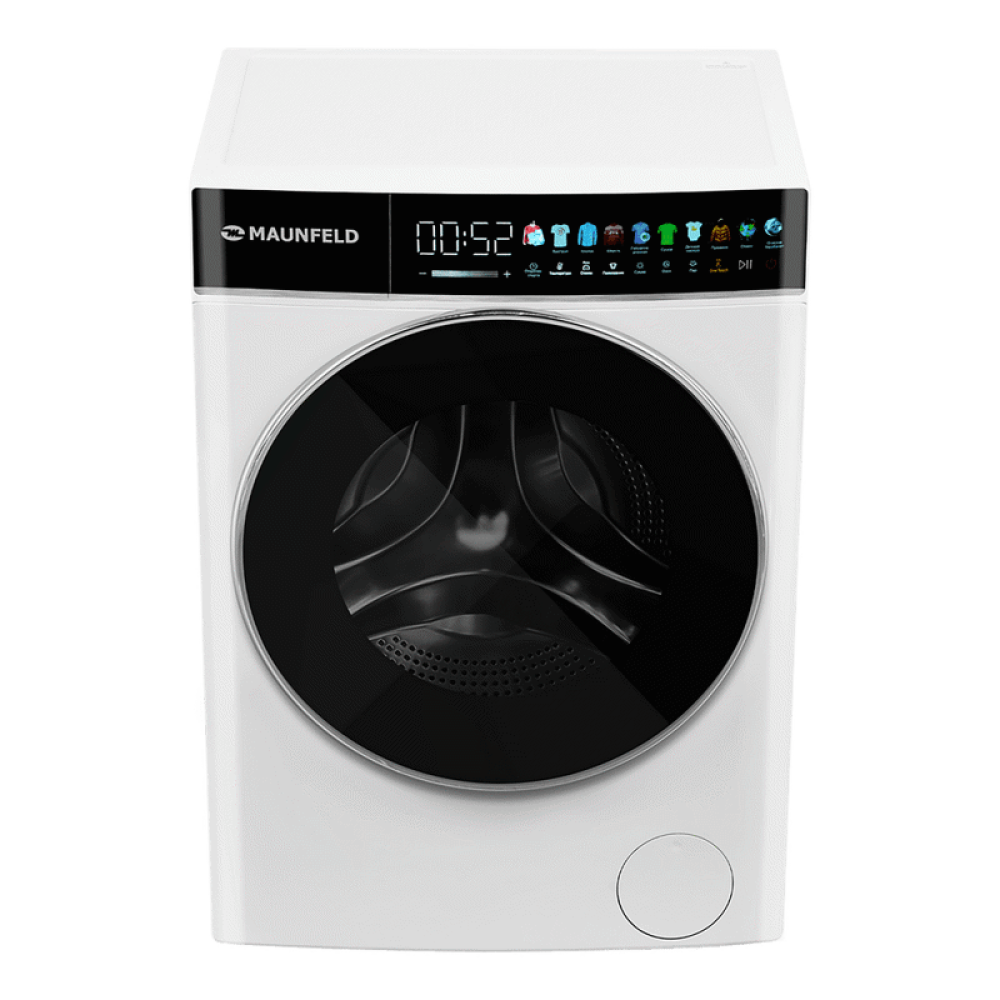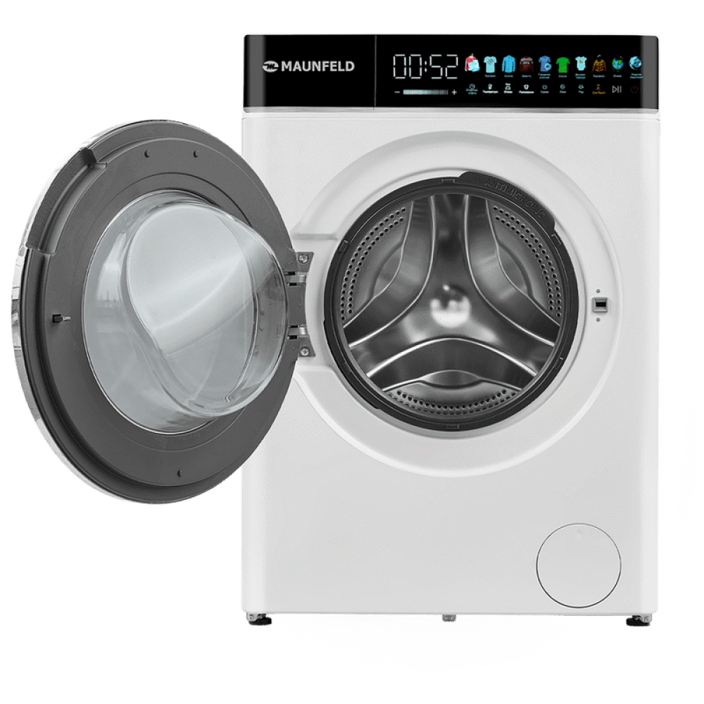Стиральная машина Maunfeld/ Cтиральная машина с прямым приводом, озонированием, инвертором и паром, Глубина 52.5 см, 9 кг, 1200 об/мин., 10 режимов, сенсорное управление, быстрая стирка, цвет: белый