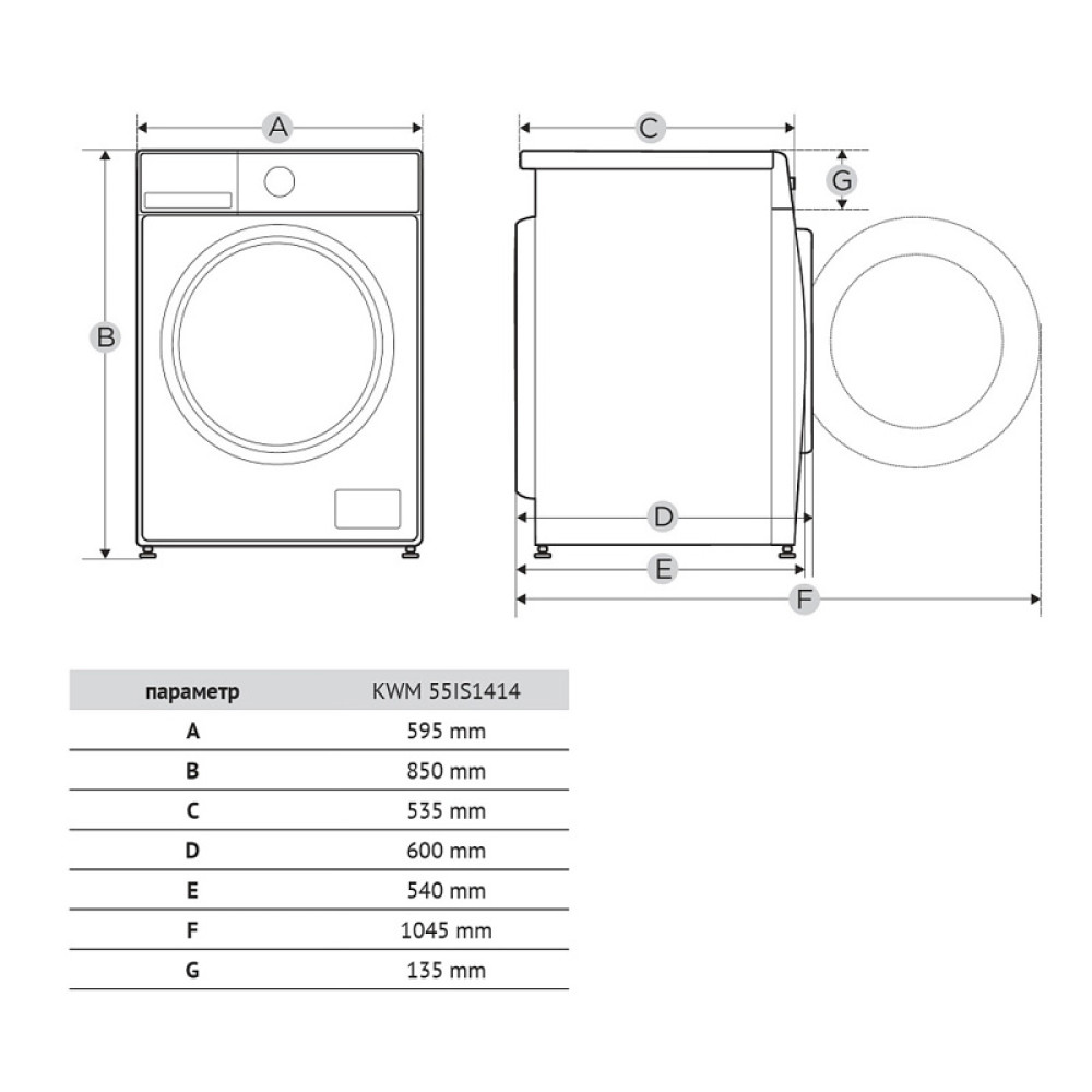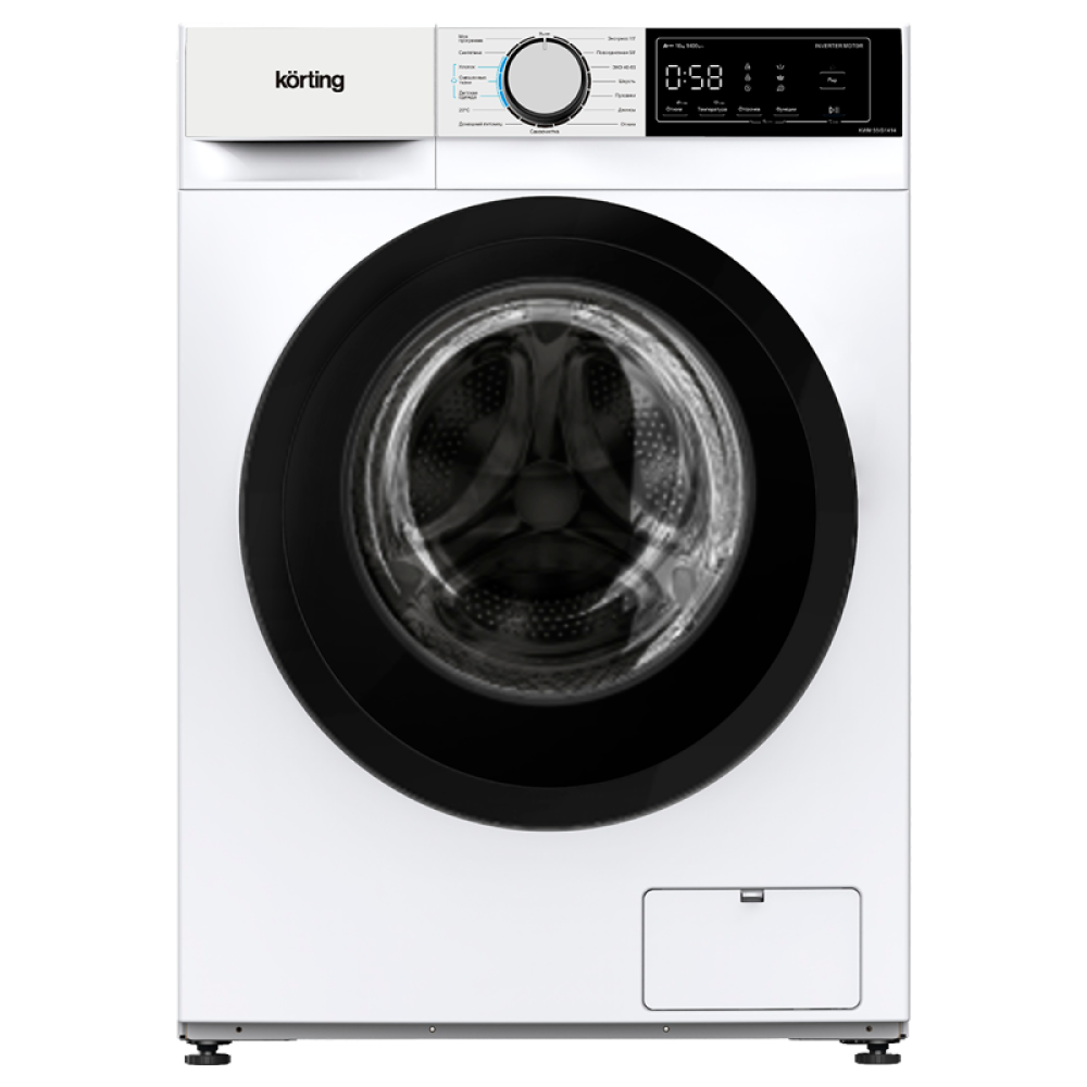 Стиральная машина с паром KORTING KWM 55IS1414 отдельностоящая, глубина 55 см, инверторный мотор, загрузка 10 кг, 1400 об/мин, сенсорное управление, LED дисплей, 15 программ, отложенный старт, контроль баланса барабана, энергоэффективность А+++, уровень
