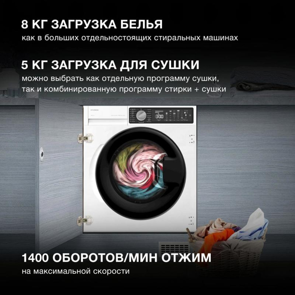 Стиральная машина/ Стиральная машина Hyundai WMD7228 класс:B загрузка до 8кг отжим:1400об/мин белый инвертер