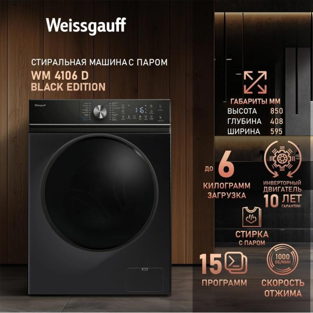 Стиральная машина Weissgauff WM 4106 D Edition класс: A+++ загр.фронтальная макс.:6кг черный инвертер