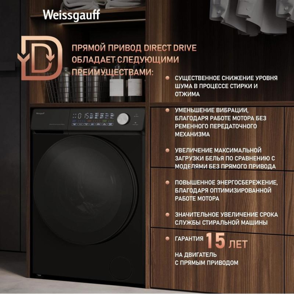 Стиральная машина Weissgauff WM 45126 Steam Direct Drive класс: A+++ загр.фронтальная макс.:6кг черный инвертер