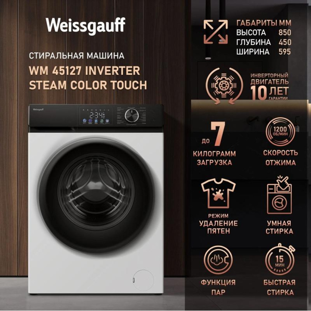 Стиральная машина Weissgauff WM 45127 Inverter Steam Color Touch класс: A+++ загр.фронтальная макс.:7кг белый инвертер